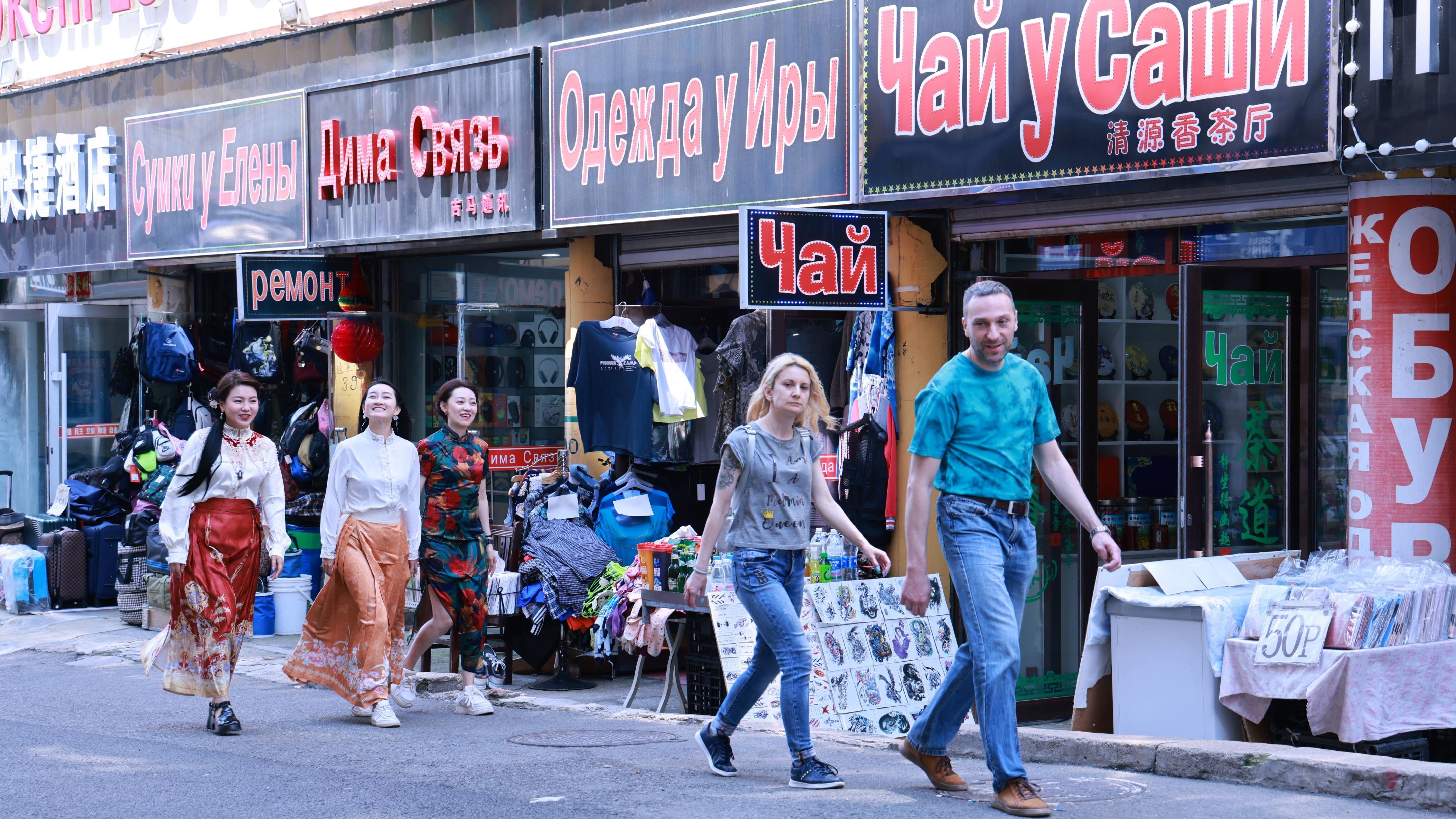 當採風團一行到了濱綏鐵路的終點站——中俄邊境城市綏芬河時,滿大街都是俄文招牌,隨處可見俄羅斯商品;忙着進出境的旅遊團,長長的購貨車隊顯示出這座邊城的魅力和活力。