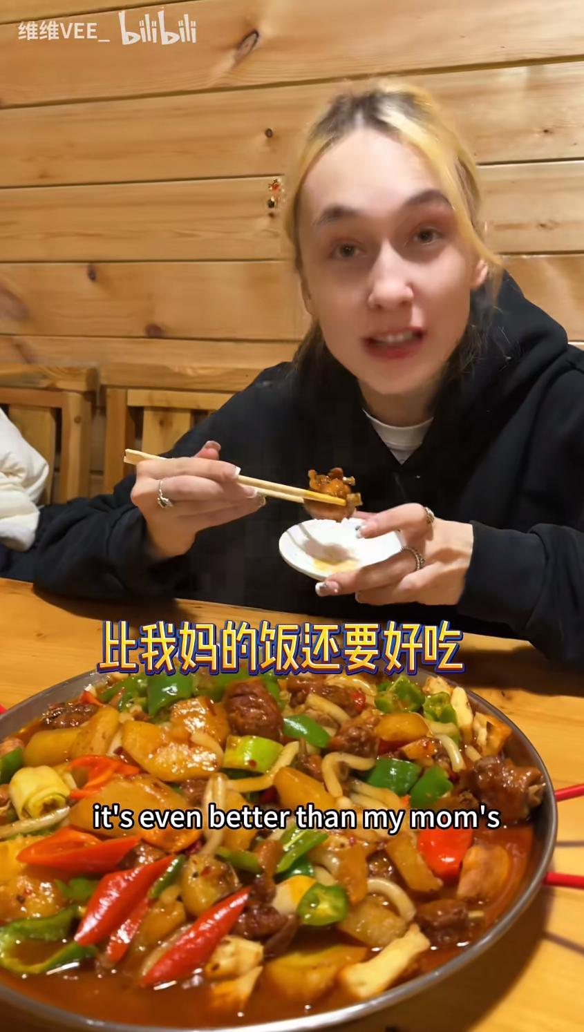 “新疆也有數不盡的美食,我最喜歡大盤雞,比媽媽做的飯還要好喫。尤其是雞脆骨特別香,辣椒脆又脆很提味,湯汁又鮮又香,大家記得喫的時候一定要加饢哦。”視頻中,Luka對桌上的一鍋大盤雞讚不絕口。