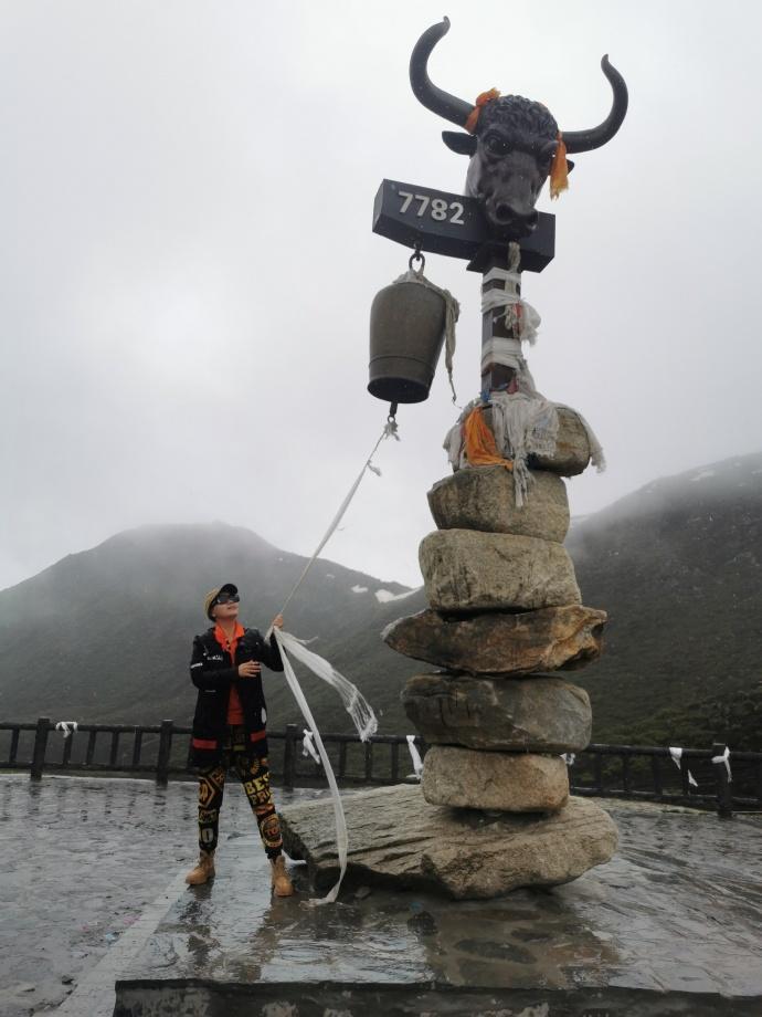 當天,在大雨朦朧中堅持打卡了色季拉山埡口。原先那個立在318旁很樸素的海拔高度紀念碑已不復存在,取而代之的是一個現代設計感較強的敲鐘打卡場景,儀式感十足。