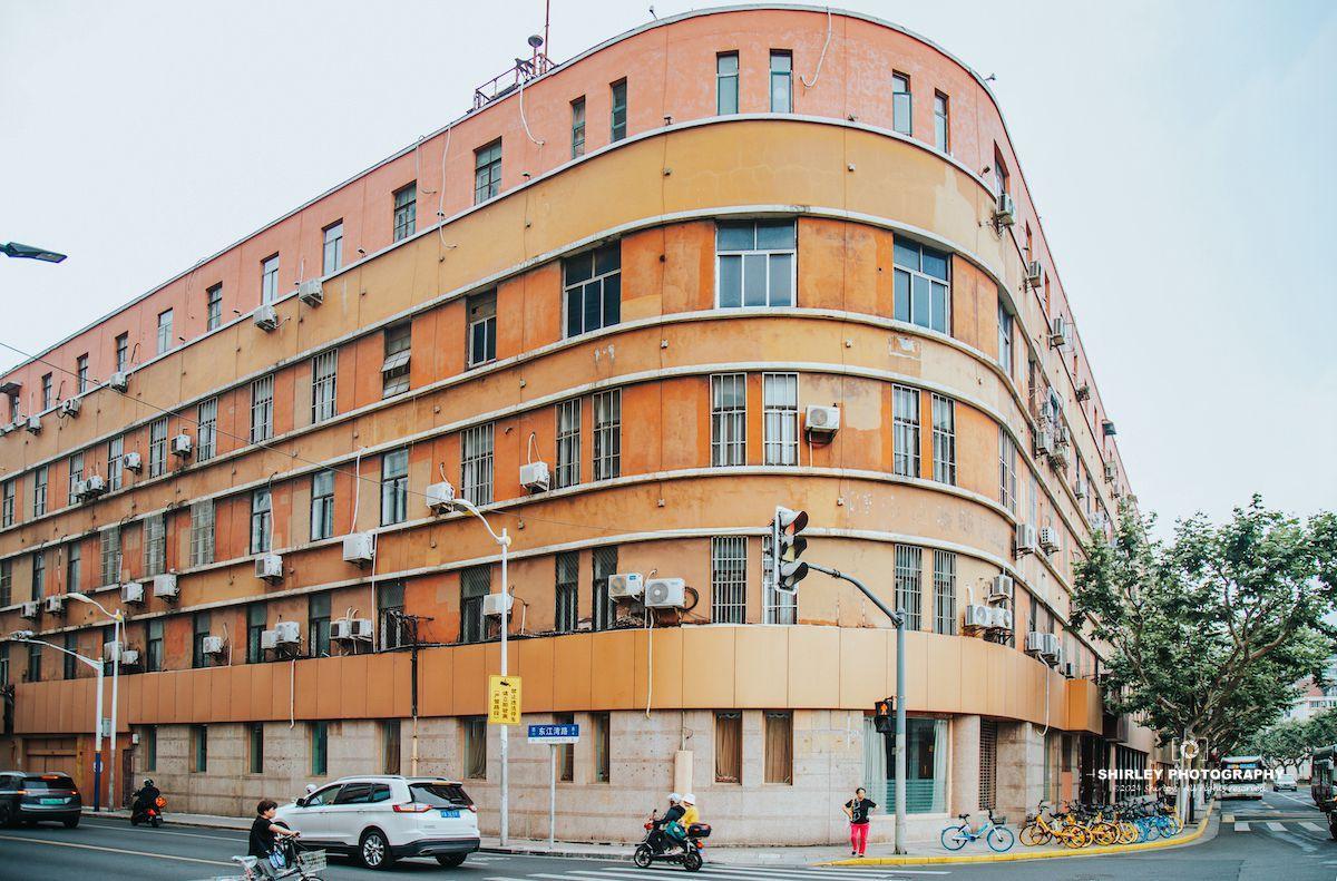 這座五層高的鋼筋混凝土大樓,橢圓的外形和粗壯的門柱以及粗線條式的建築風格,經過時間的洗禮顯得滄桑而又樸素。它體量很大,門牌號是四川北路2121號,實際上被黃渡路、東江灣路、四川北路三條馬路合圍起來,如軍艦般橫臥在虹口區川流不息的馬路邊。