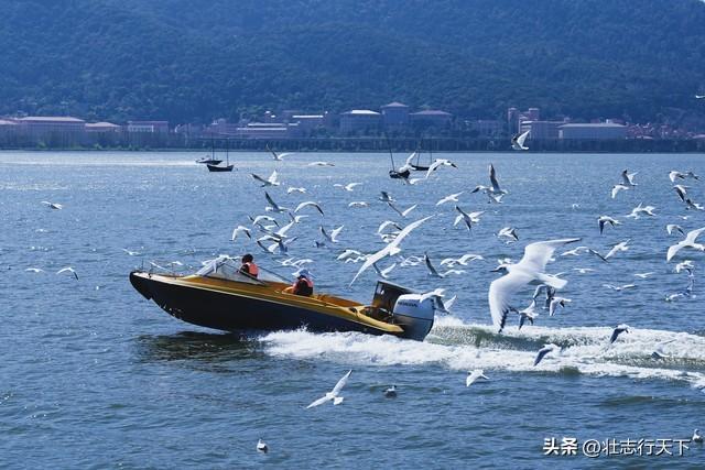 昆明的滇池風景很美,尤其是海埂大壩的風景,更是讓遊客流連忘返。因爲我第一次到昆明旅行的時候是春節期間,那時候天氣還算涼快,所以在海埂大壩看到了成羣結隊的海鷗,也用麪包投餵了海鷗,與海鷗互動。現場的遊客拍照的拍照,打卡的打卡,真的是人與自然最美的風景。但是這一次是夏天去的昆明,這裏的海鷗已經飛走了。所以要想到昆明海埂大壩看海鷗的話,就選擇冬天去,這時候海鷗飛來過冬避寒,夏天去的時候是看不到海鷗的。大家奔着海鷗去的話,就要看時間能否對得上,對不上的話,那就看不到海鷗。