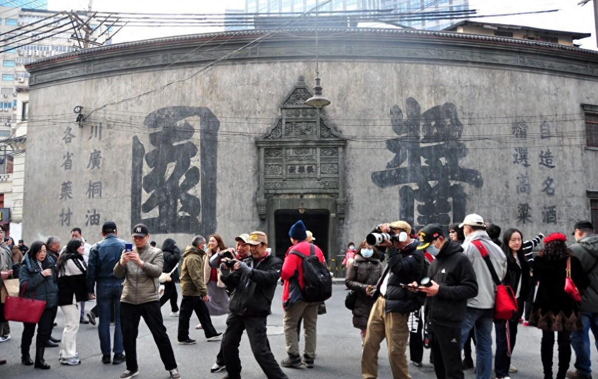 做舊的牆體、鱗次櫛比的老式店招、復古的海報讓人彷彿穿越回老上海,位於C位的便是堵超10米的弧形高牆,牆上碩大的“醬園”二字,呼應了電影的名字。在電影還未開拍之前,這裏就先一步成爲了滬上最具人氣的網紅打卡地。不少中老年人與親友結伴而行,也不乏年輕的時尚潮人們帶着相機過來“拍大片”。冷清許久的乍浦路,好久沒這麼熱鬧了。
