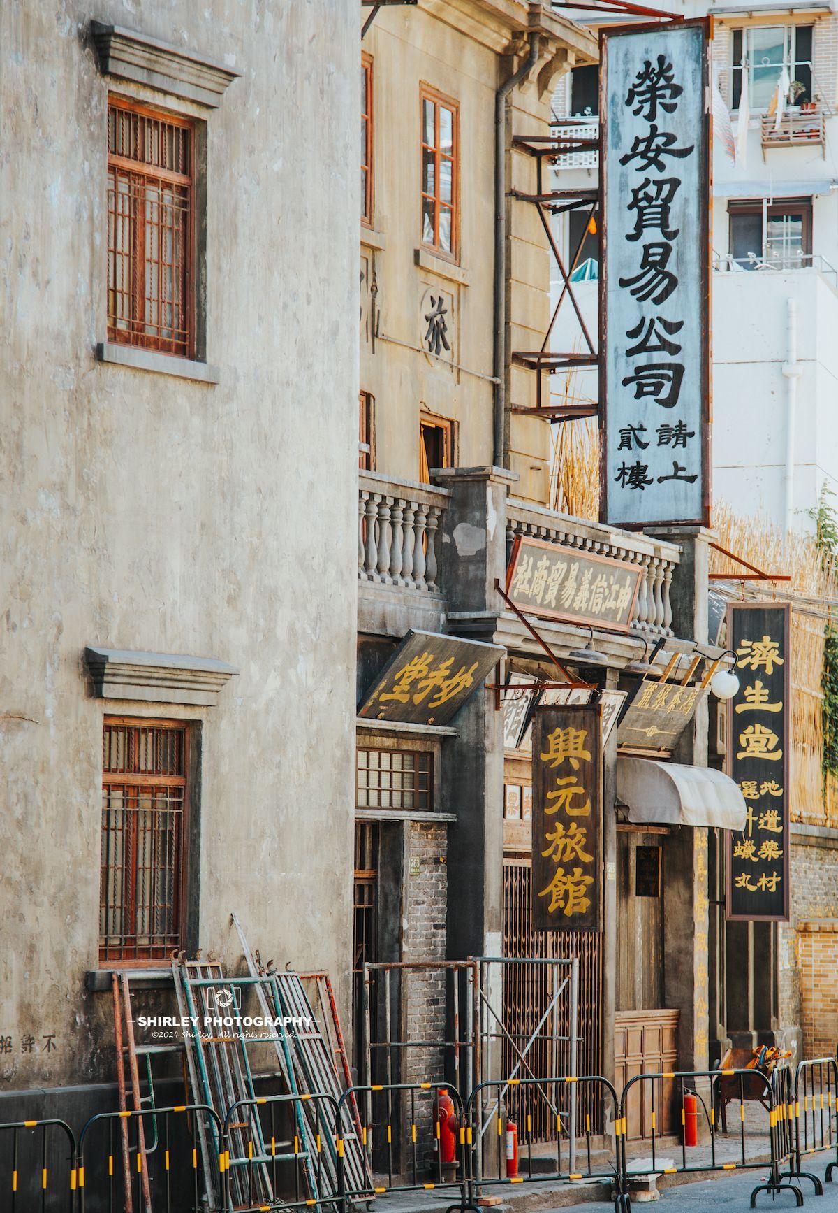 虹口區的乍浦路北海寧路口,道路兩邊都是有近百年曆史的老房子,同樣是準備拆遷的區域。恰好《醬園弄》這部電影的時代背景就是上世紀四十年代的上海,於是劇組在乍浦路一帶依託現有馬路和老建築,搭建起了一片帶有“老上海風情”的街區作爲取景地。