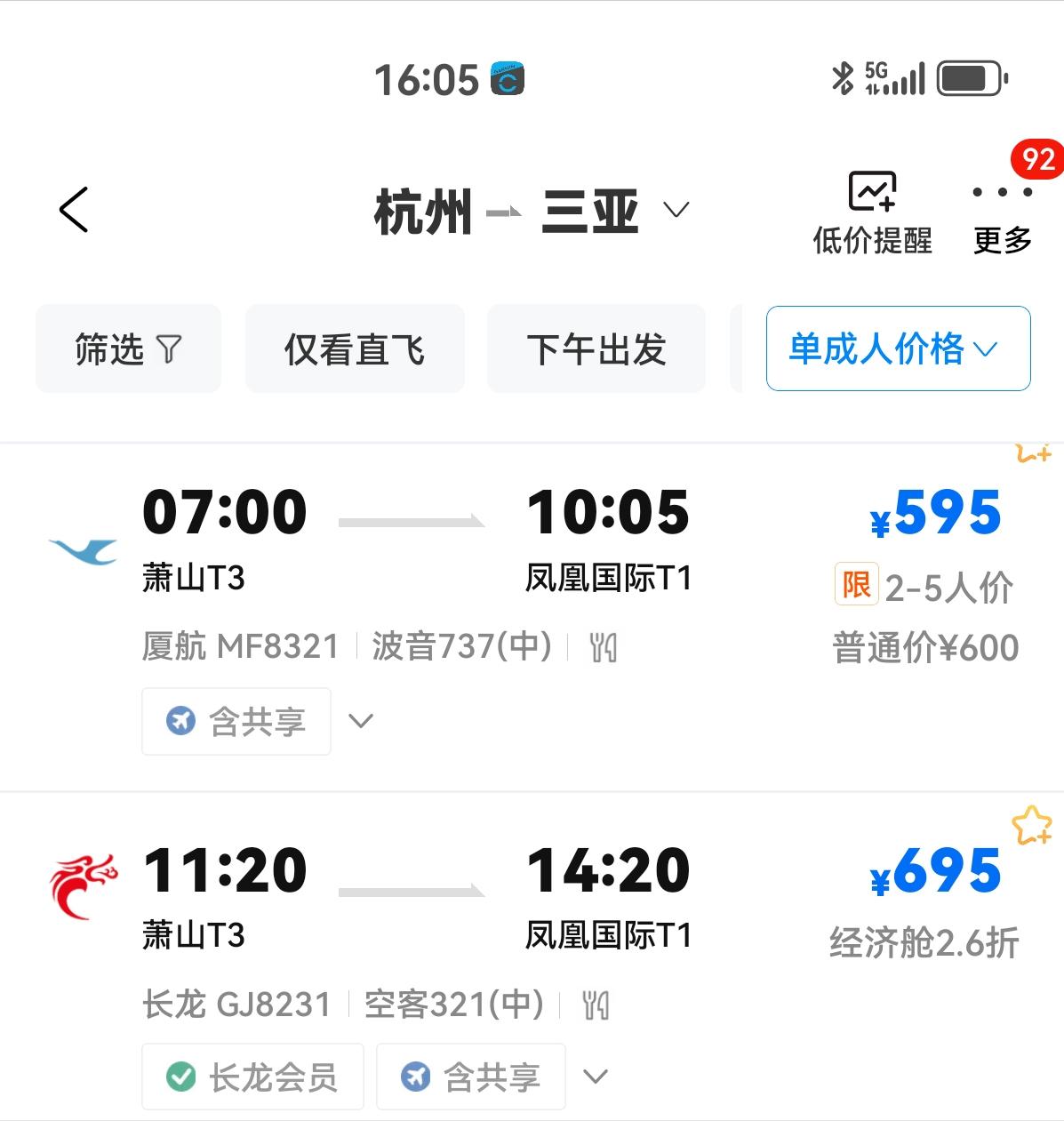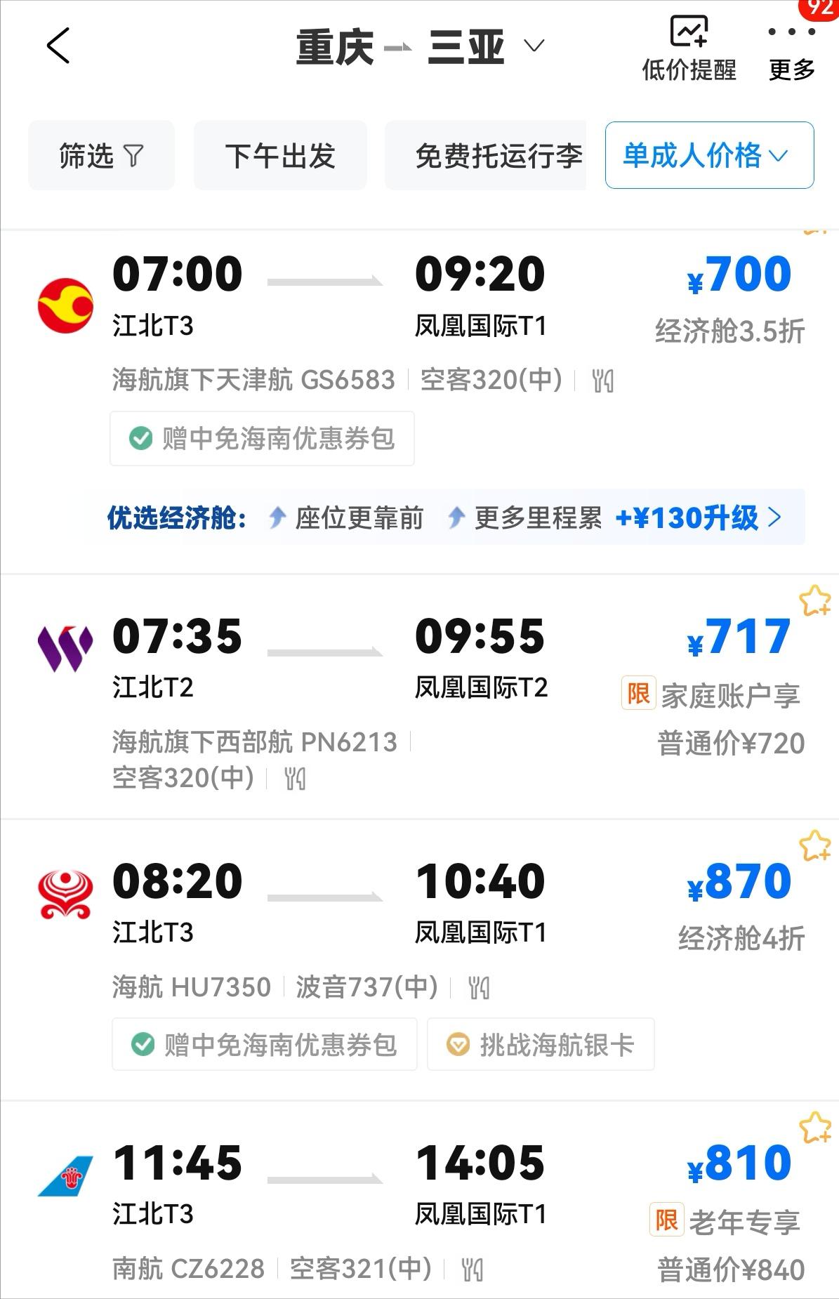 國內一些主要城市到三亞的機票行情。這是最近各地飛三亞的機票,價格要比冬天便宜太多了,很多時候單程機票只有2、3折的樣子,簡直就是白菜價。