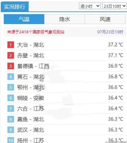 最近全國很多地方連續高溫,據報道,昨天湖北更是大面積預警,上午10點全國氣溫榜前10名中湖北就有6席。