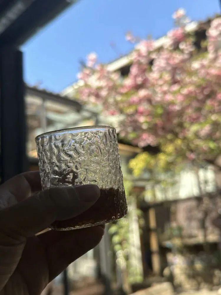 大約是地理位置優越,這家咖啡館附近還有好幾家咖啡館,都裝修得花團錦簇,綠意融融。我們是去年4月初去的,別處櫻花都已經開過,但是這家咖啡館的小院裏,一棵櫻花樹正開得極好。下午四五點的陽光還耀眼,一抬頭,灼熱的陽光幾乎被繁花遮擋住,花葉間漏下來的陽光如碎銀,閃耀在一杯一杯的咖啡裏。很是羨慕早就在花樹下或坐或倚的幾位遊客。好在,小院裏的玻璃房也不錯,可以更好地欣賞“亂花迷人眼”,天藍如洗,白胖胖的雲朵在櫻花樹上空懶洋洋地變幻,一如悠閒的我們。