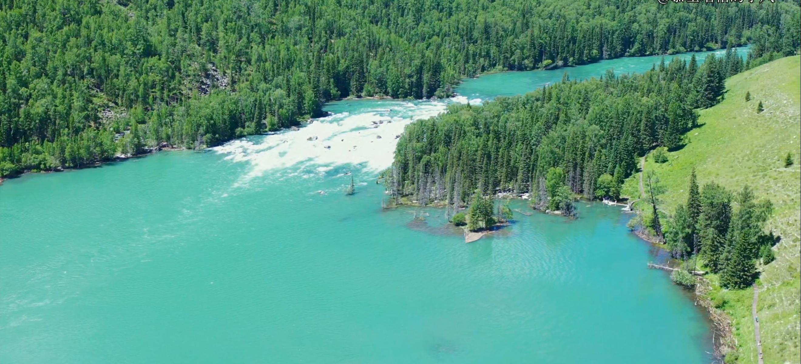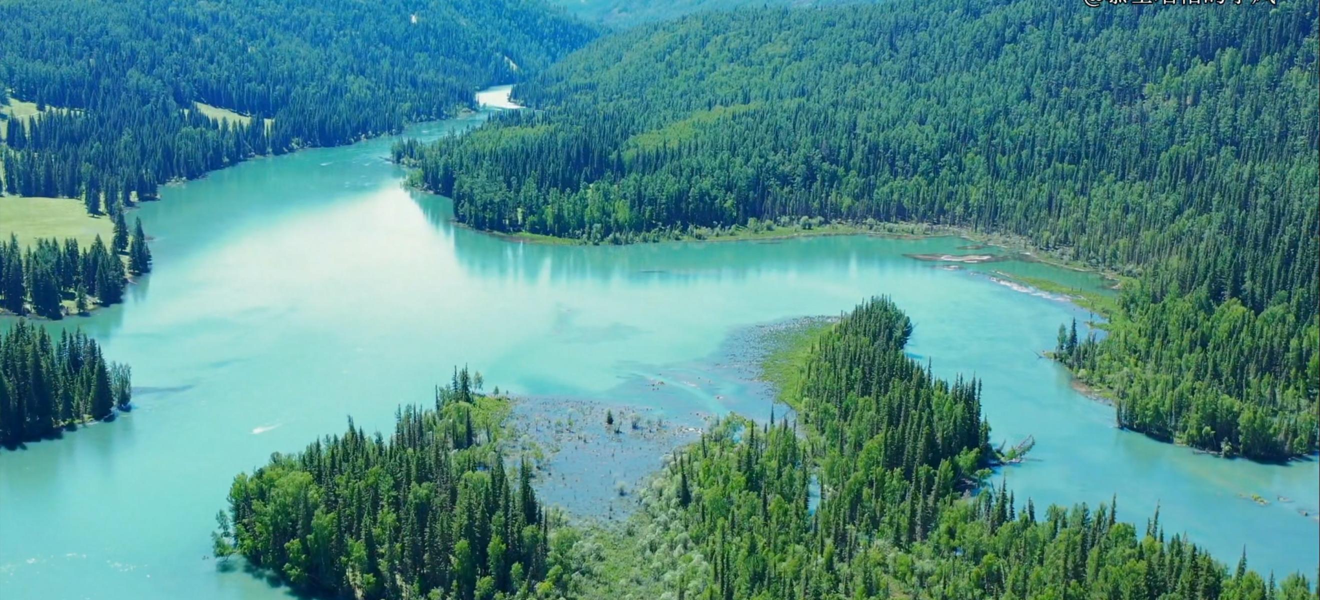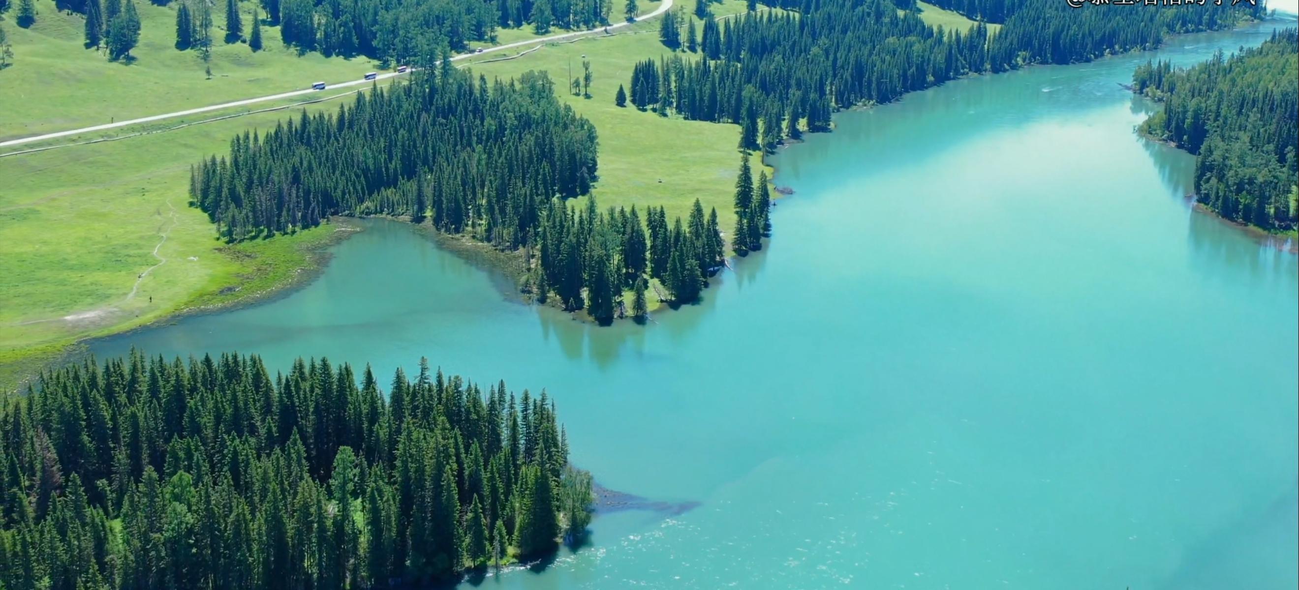 著名的喀納斯三灣。神仙灣、月亮灣、臥龍灣是喀納斯的精華,三灣總長8公里,湖光山色美輪美奐,這裏有木棧道,一沿途都沿着粉藍色的喀納斯河視覺盛宴,“東方瑞士”美不勝收。