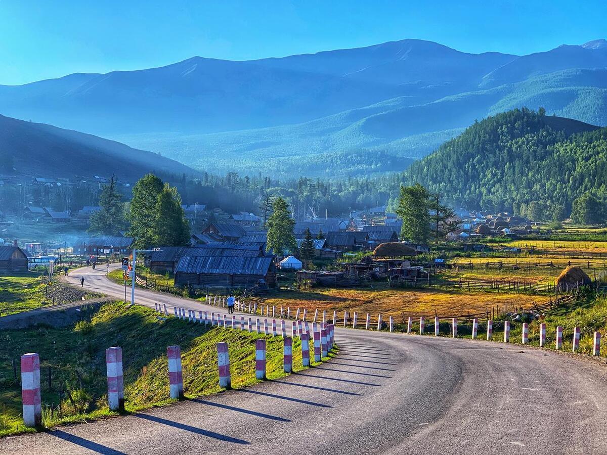 白哈巴,一個哈薩克族和圖瓦人聚居的小村莊,與哈啥克斯坦接壤,這裏有原始森林、古樸的小木屋裊裊炊煙、淡淡晨霧構成了一個童話王國,被稱爲西北第一村,這裏遊人雖不算多,但還不能說是原生態,喫飯也不算便宜,住宿條件很一般,而且目前施工的比較多,回來排隊等車困難,要做好心理準備。