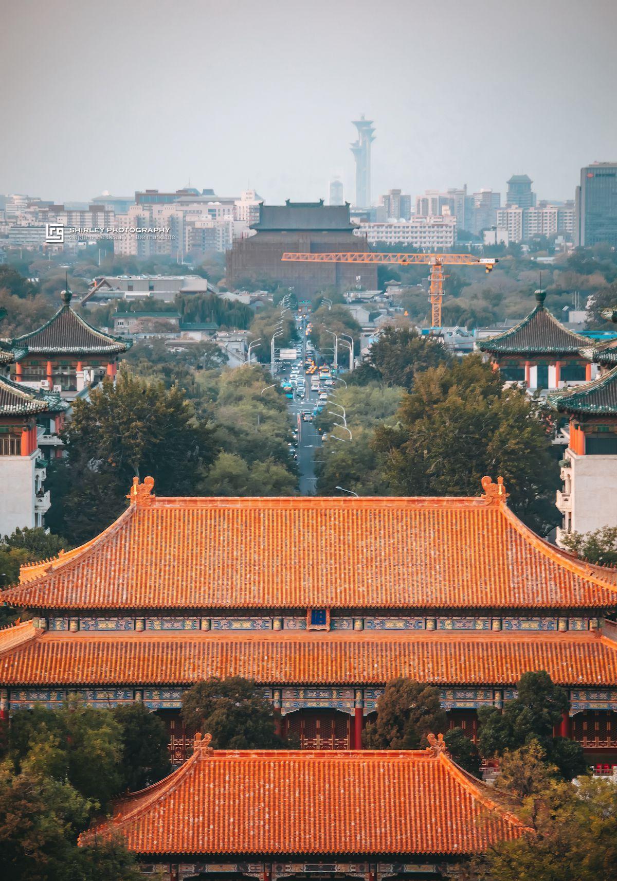 萬春亭更是在無人機禁飛的情況下、能登高望遠的好地方。每到夕陽西下之時,這裏都會聚集許多攝影愛好者;向南是故宮那紅牆金瓦的宮殿羣,向北則是連接着鐘鼓樓的筆直軸線,天氣好時還能看到遠處的奧運塔,氣象萬千。