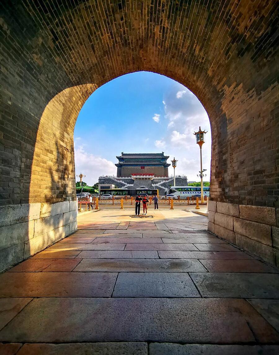 上文介紹過其重建史,這裏不贅述了。軸線南端節點的意義重大,因爲進入進入永定門,筆直的永定門御道向北延伸,直通正陽門,與紫禁城內御道相連;站在永定門向北遙望,正陽門、天安門、故宮、景山、萬寧橋、鐘鼓樓等,北京城獨有的壯美秩序在這條中軸線上就此鋪展開來。如果中軸線是一曲樂章的話,第一個音調正是在永定門奏響。