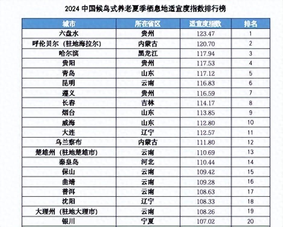 前不久《2024中國候鳥式養老夏季棲息地適宜度指數》城市發佈: