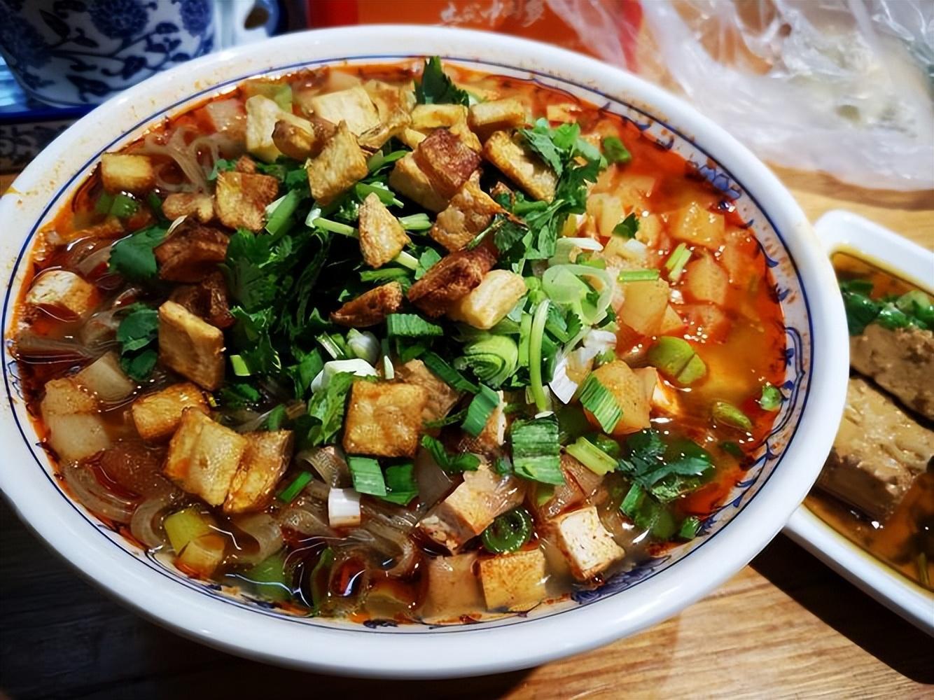 羊雜碎,先將羊雜用大火煮熟,再用中小火燜煮,以湯清肉爛、無腥味而聞名,一碗香味四溢、色澤鮮豔的羊雜碎是中衛人喜愛的早餐之一。