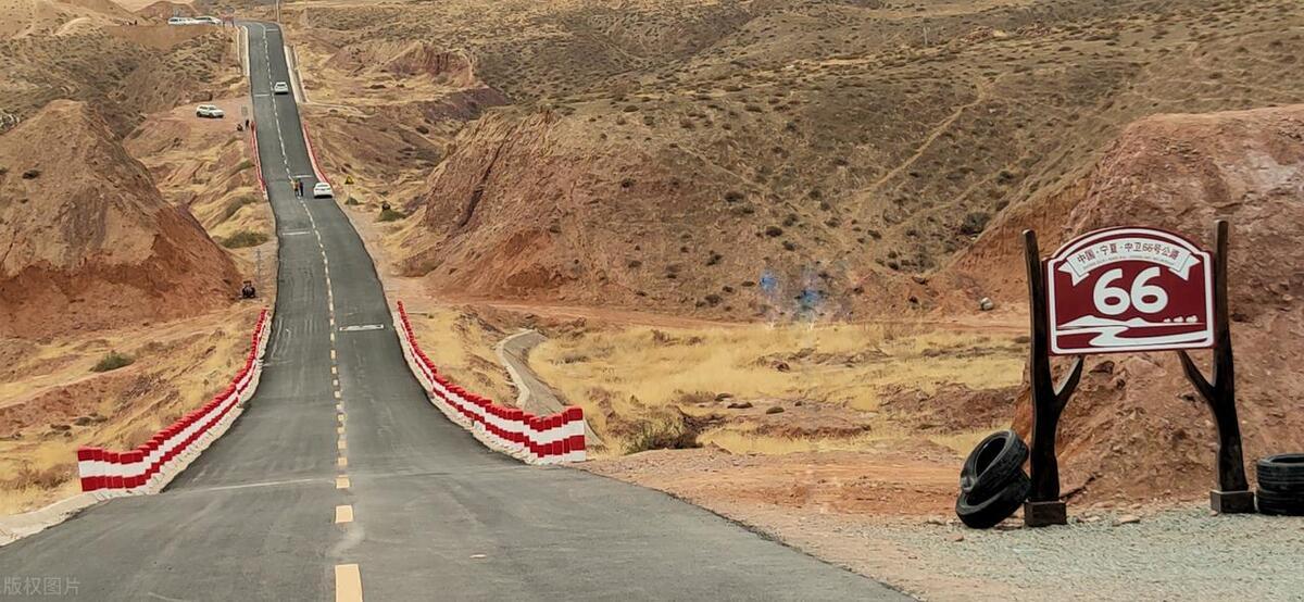 “66號公路”,這是中衛通往北長灘古村落的鄉村公路,因爲路兩邊是綿延不絕的戈壁,道路蜿蜒曲折一眼望不到盡頭,荒涼又有獨特韻味,被譽爲中衛的"66號公路"。