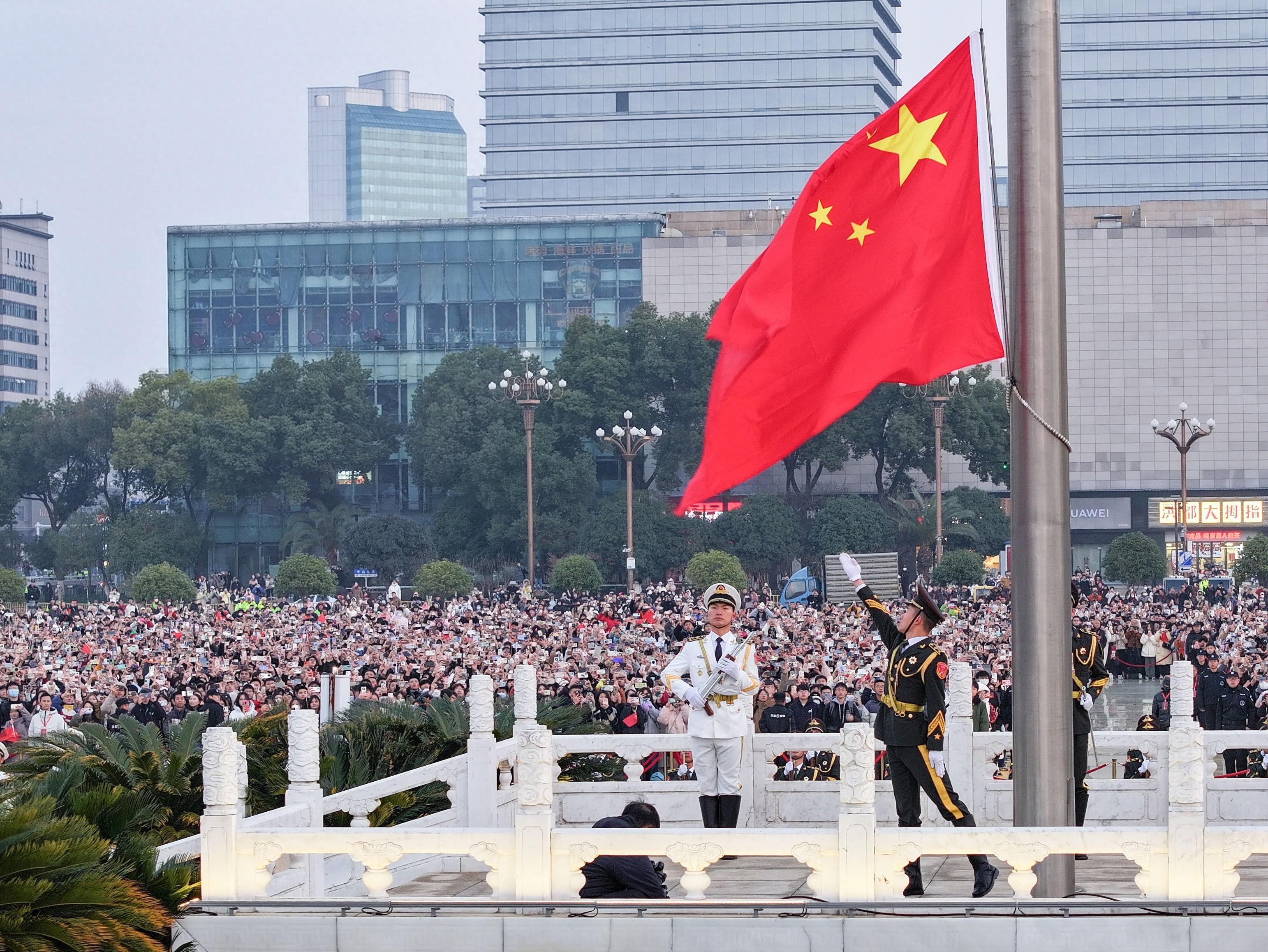 八一廣場上的升旗儀式 南昌市文化廣電旅遊局 供圖