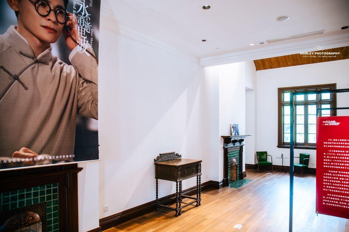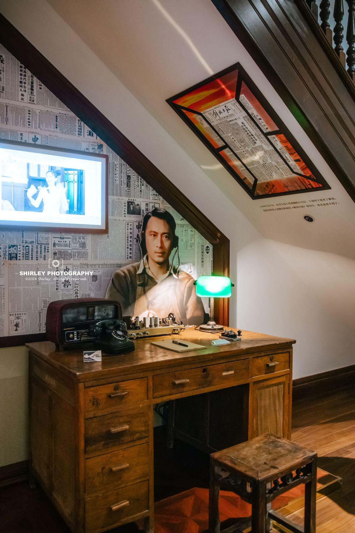 二層是舞劇電影《永不消逝的電波》的主題特展,能看到李白家書、生平照片,以及關於當時隱祕戰線的珍貴史料等。二層展覽內容不多,但是空間的佈置風格與一層一脈相承。老洋房的優雅氣度,跨越百年不減分毫。