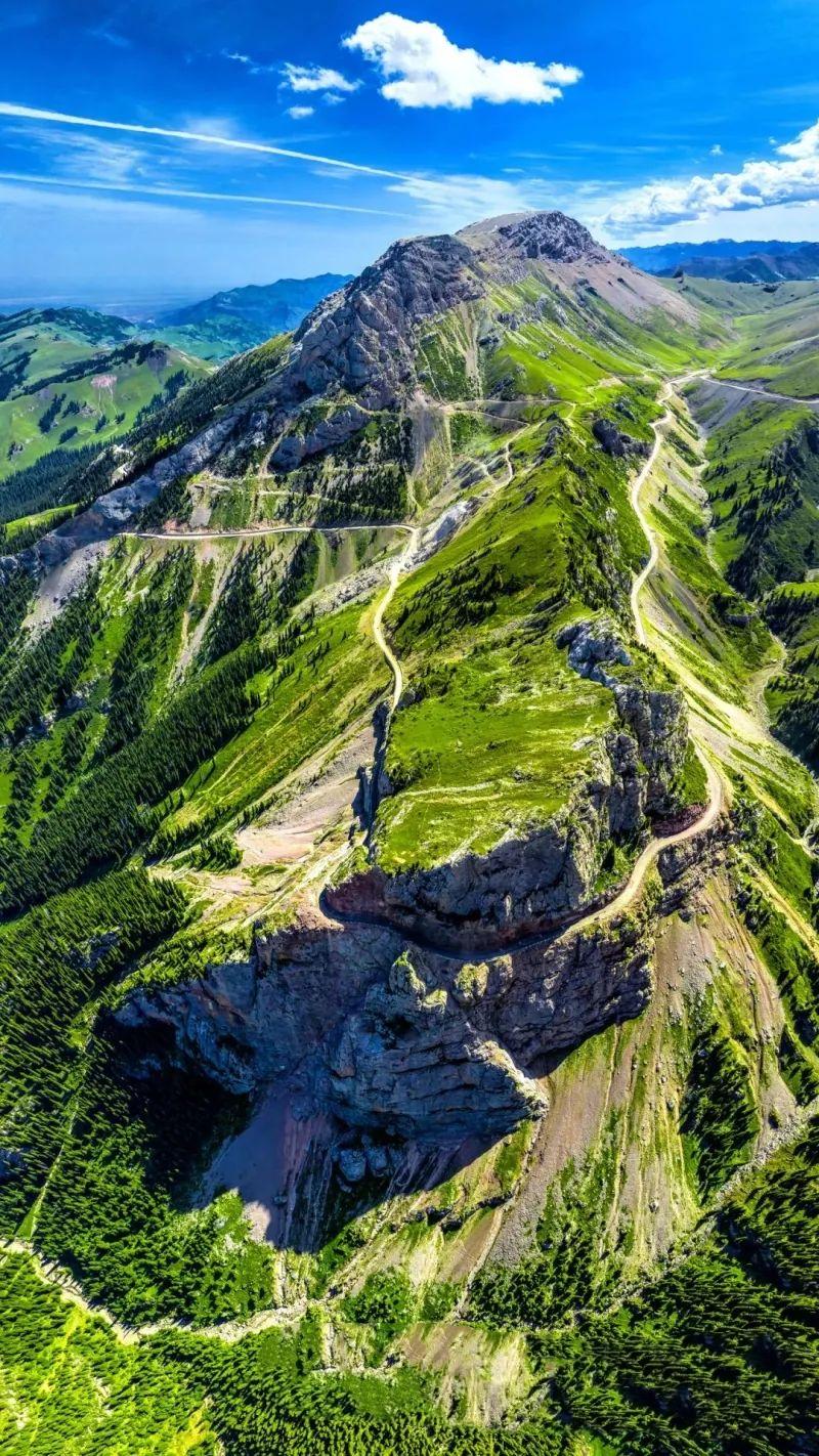 小編走遍了六月份的伊犁草原,就沒有看到這麼綠的草原,夏塔也好,還是喀拉峻、那拉提、庫爾德寧,小編忍不住停下車,放飛無人機,在上帝視角下,伊昭公路是真的很美。