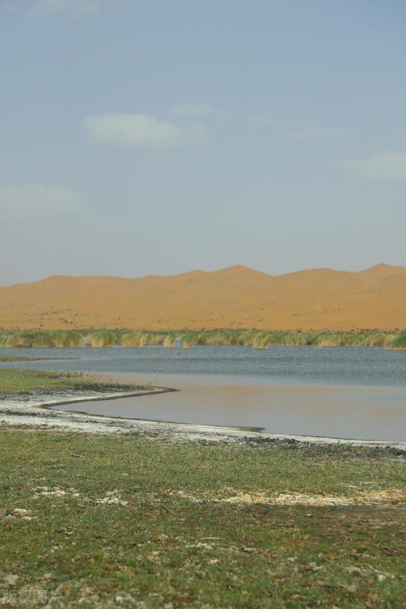 金色沙海上,偶能看到海市蜃樓;往深處走去,還有湖泊溼地。