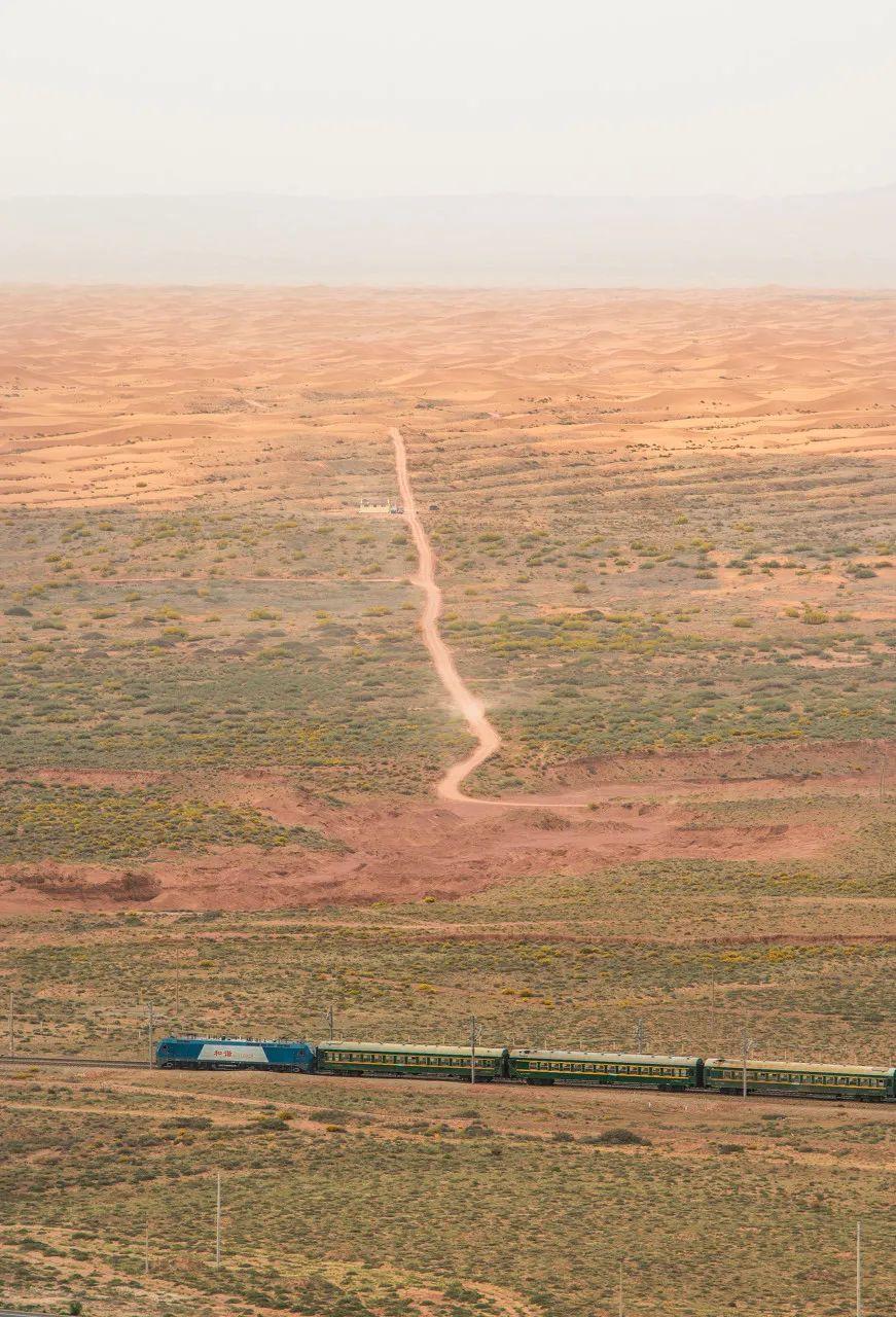 筆直的公路在戈壁上延展,連接着沙坡頭和北長灘,這裏既有加州66號的公路風光,亦獨具大西北的風情。
