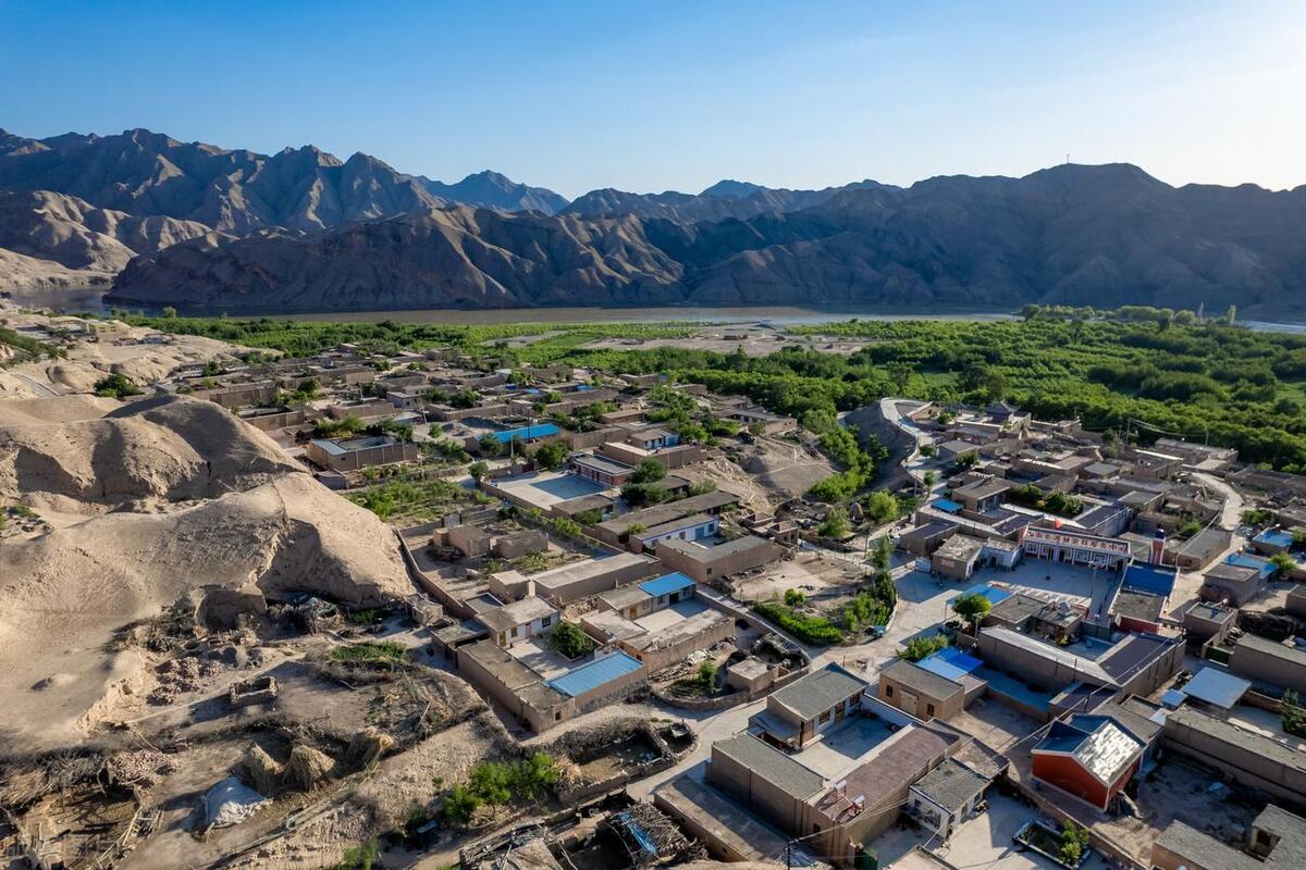 點綴於荒漠的綠洲,一個烏托邦的存在。大漠、河流、荒原、戈壁、黃土夯成的連片屋子,再加上枯樹的點綴,來到此處,仿若抵達摩洛哥。