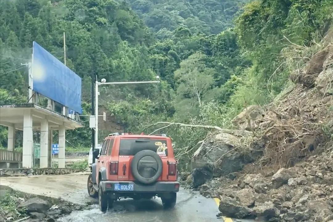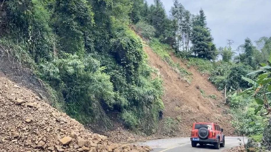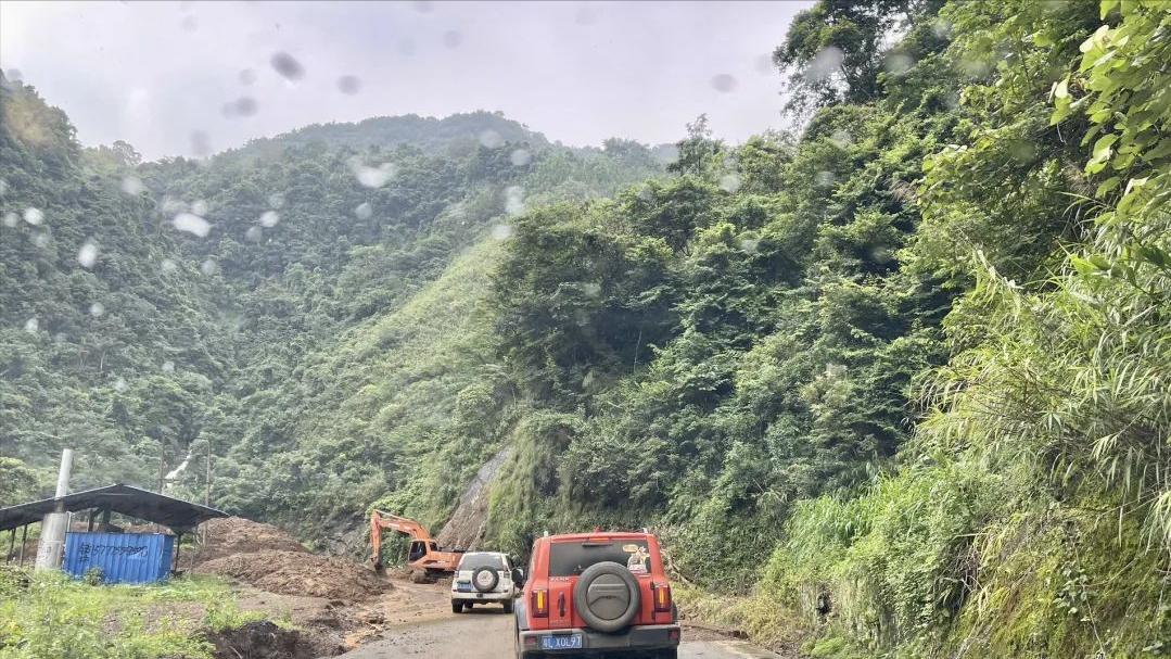 因前幾天這邊下了大雨,路上遇到很多山體滑坡和塌方的情況,很多大型工程清障車正在辛苦工作着。因爲滑坡和塌方的地方太多,還來不及全部清理,所以很多地方都還只是稍微整理出車輛能通行的部分。