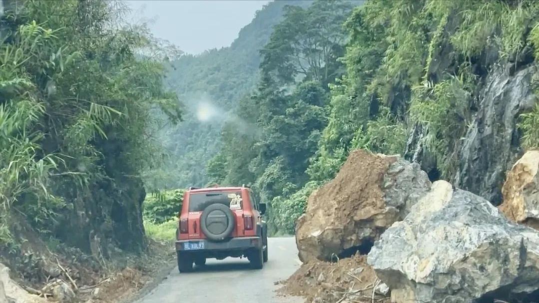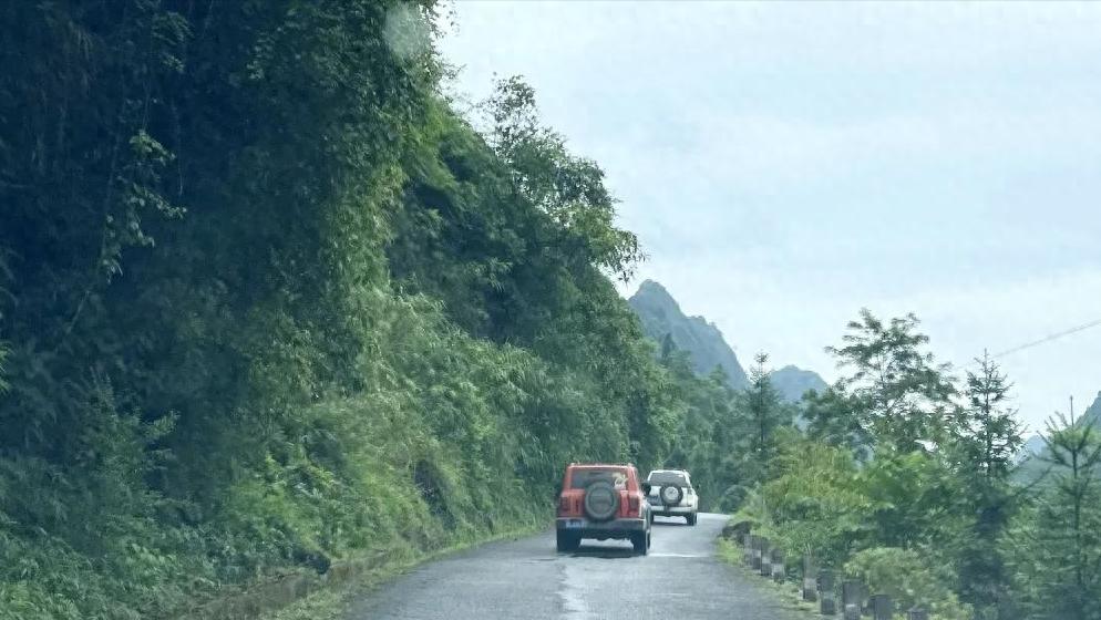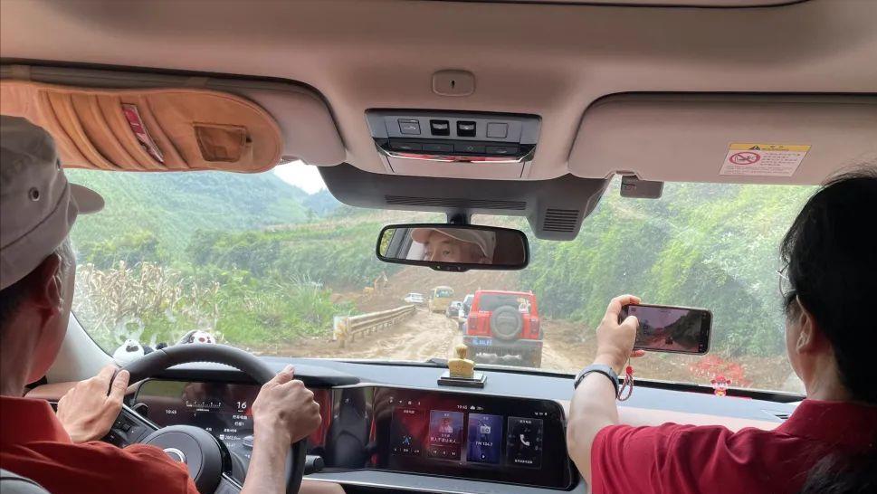 整個行程基本上都是盤山路,彎多路窄,加上路上的各種狀況,領隊方司令一刻也沒休息,十分盡責地不停提醒着後方車輛:有對向車...前面有塌方,等我的車先過去,你們再一臺一臺通過...路面有積水溼滑,慢慢開...前面路基有塌陷,你們都靠着山這邊開,我會提醒你們前方來車情況...