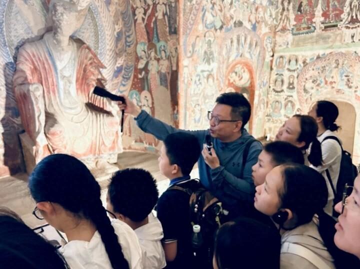 研學導師在敦煌莫高窟爲孩子講解壁畫 蔣理 供圖