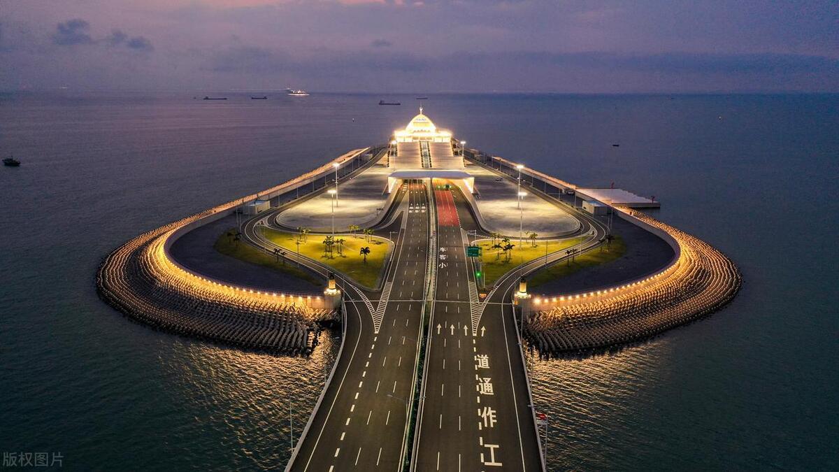 人工島修建。港珠澳大橋修建的人工島有岸邊作支撐,施工相對容易,而深中通道人工島是在海中修建,需要將超大鋼圓筒垂直打入海底作爲人工島地基,圍成人工島後抽沙,再灌入混凝土後凝固成爲島體,硬是通過這種填海造島方式造出了兩座人工島。