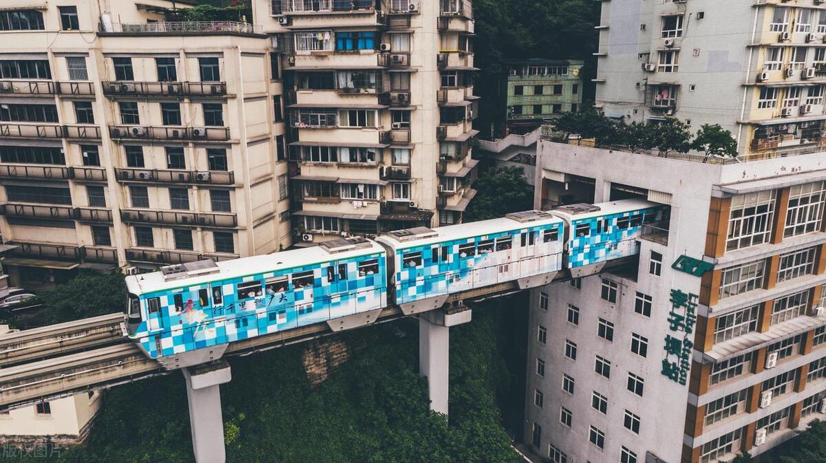 李子壩輕軌站,輕軌穿樓而過的奇觀,一個滿足外地人好奇心的景點。