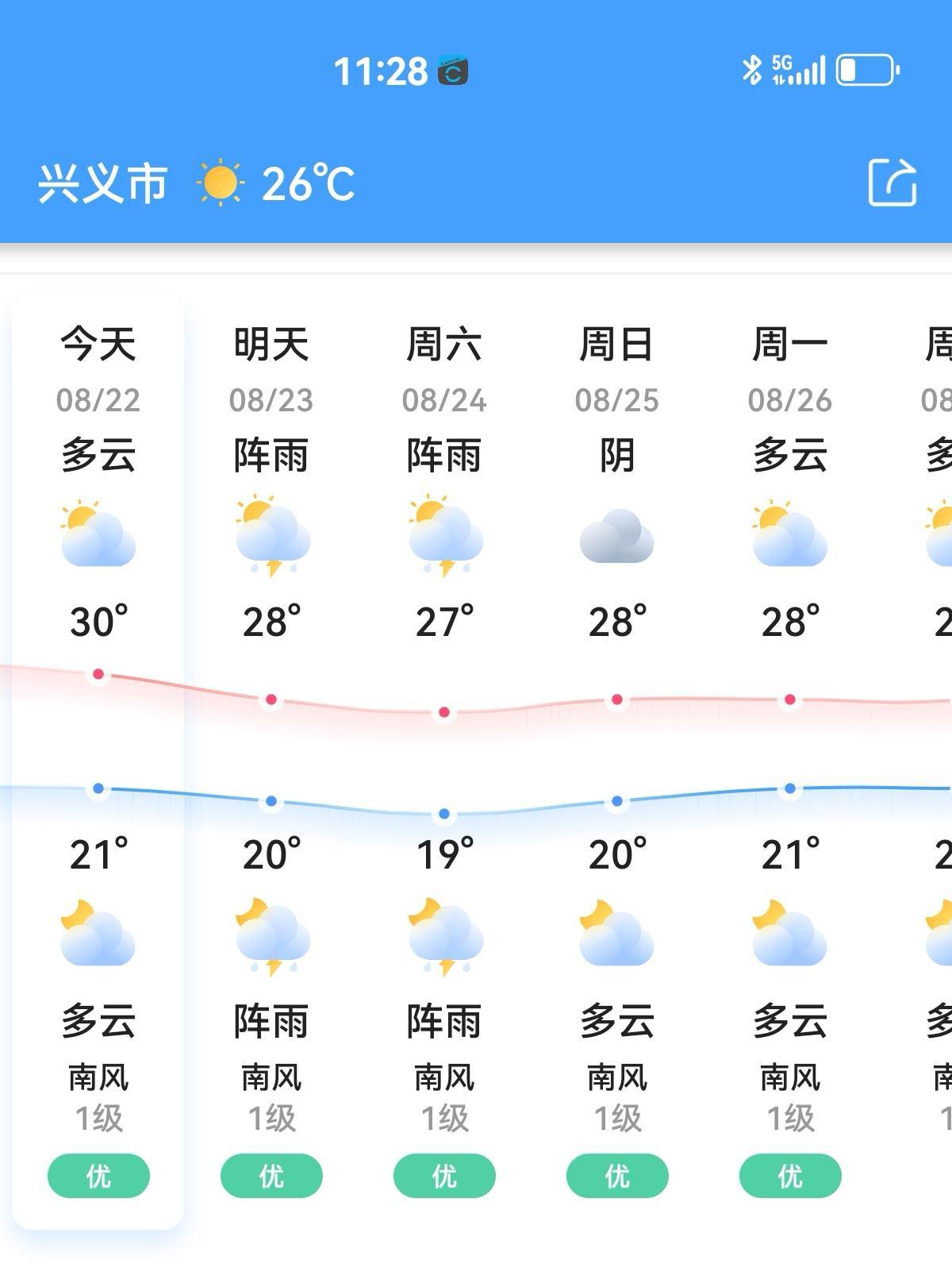 7、黔西南也是貴州被忽視的避暑地,看看其首府興義市的這幾天的天氣,是不是給你很大的驚喜,這個小城冬天是貴州最暖和的城市,竟然夏天也不熱,氣候真是絕佳,被認爲是貴州最宜居的小城。