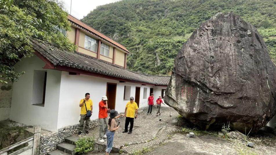 途中我們打卡了一個飛來石的景點。這塊巨大的石頭是1983年3月19日凌晨2:30,悄然飛到民族中學一座三合院的校舍院中央的,巨石除北面與屋檐接觸稍有損壞外,其餘房屋安然無恙。當時在宿舍睡覺的老師們被聲音驚醒,開門一看驚嚇不已,巨石從何而來至今是個謎。