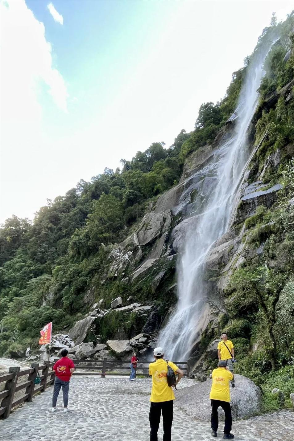 去獨龍江需要提前在網上預約。它靠近緬甸,有中緬41號界碑。我們去打卡了離41號界碑不遠的哈滂瀑布。瀑布從高高的山上飛流而下,在大石塊上飛濺起很高的水花,頗爲壯觀。方司令說現在水不大,如果水大一點更壯觀。