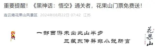 可免費遊玩大聖“老家”花果山。