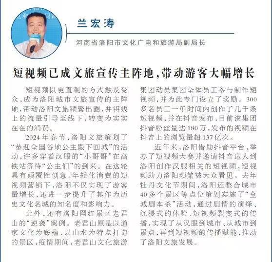短視頻以更直觀的方式觸及受衆,成爲洛陽城市文旅宣傳的主陣地,帶動洛陽文旅頻繁出圈,並將線上的流量引導至線下,轉變爲實實在在的消費。