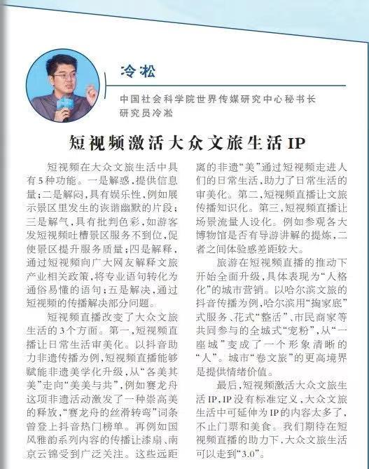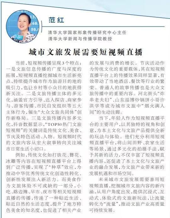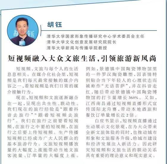 近日,清華大學國家形象傳播研究中心舉辦《短視頻時代的大衆文旅生活白皮書》(以下簡稱“白皮書”)發佈會,探討如何更好推動短視頻直播與文旅產業融合發展,進一步豐富大衆文旅生活。