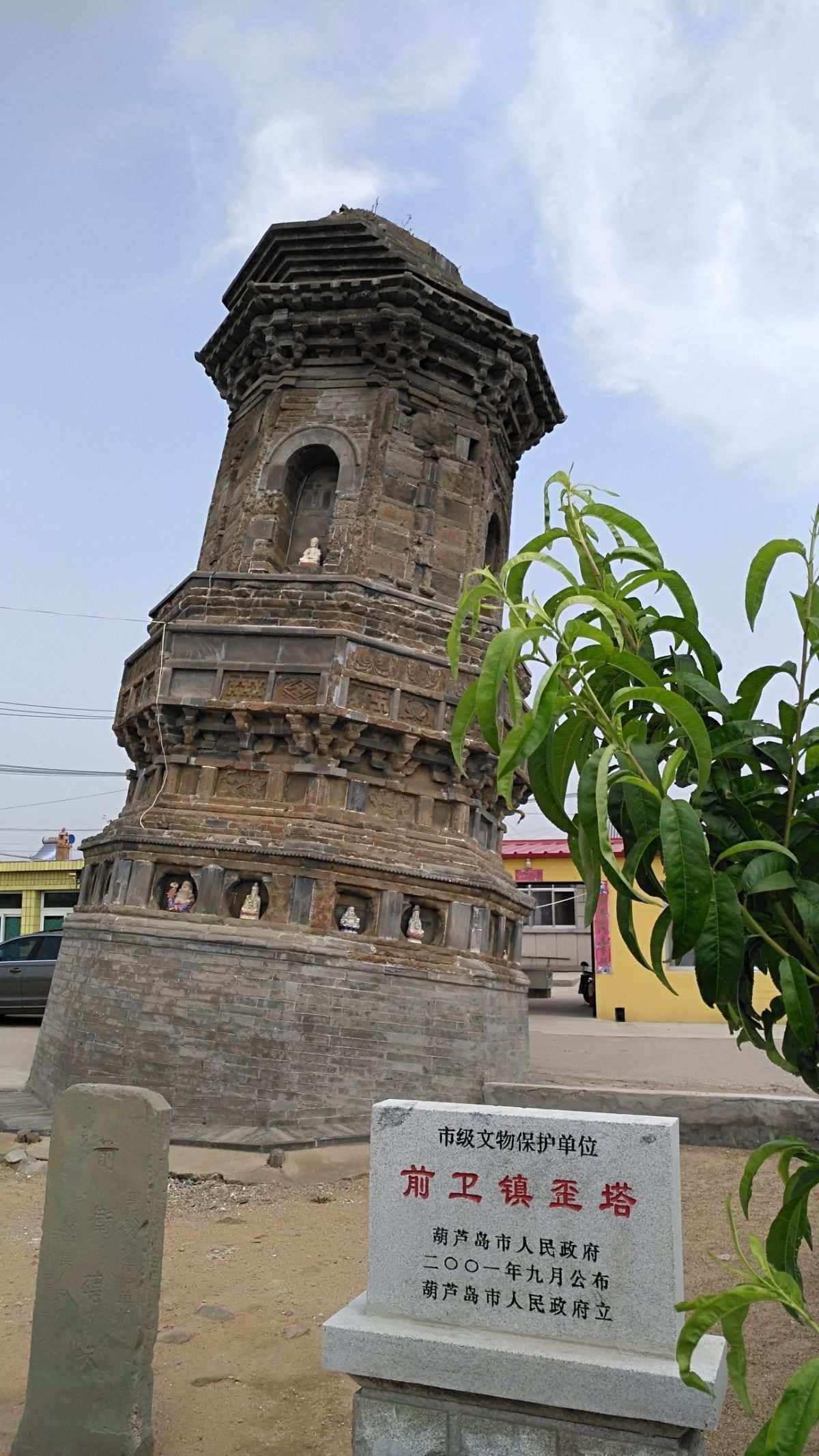 前衛歪塔,建於遼代,塔身高10米,塔身向東北方向傾斜了12度,塔尖水平位移1.7米,該塔建成後幾經地震與洪水破壞,卻始終斜而不倒。