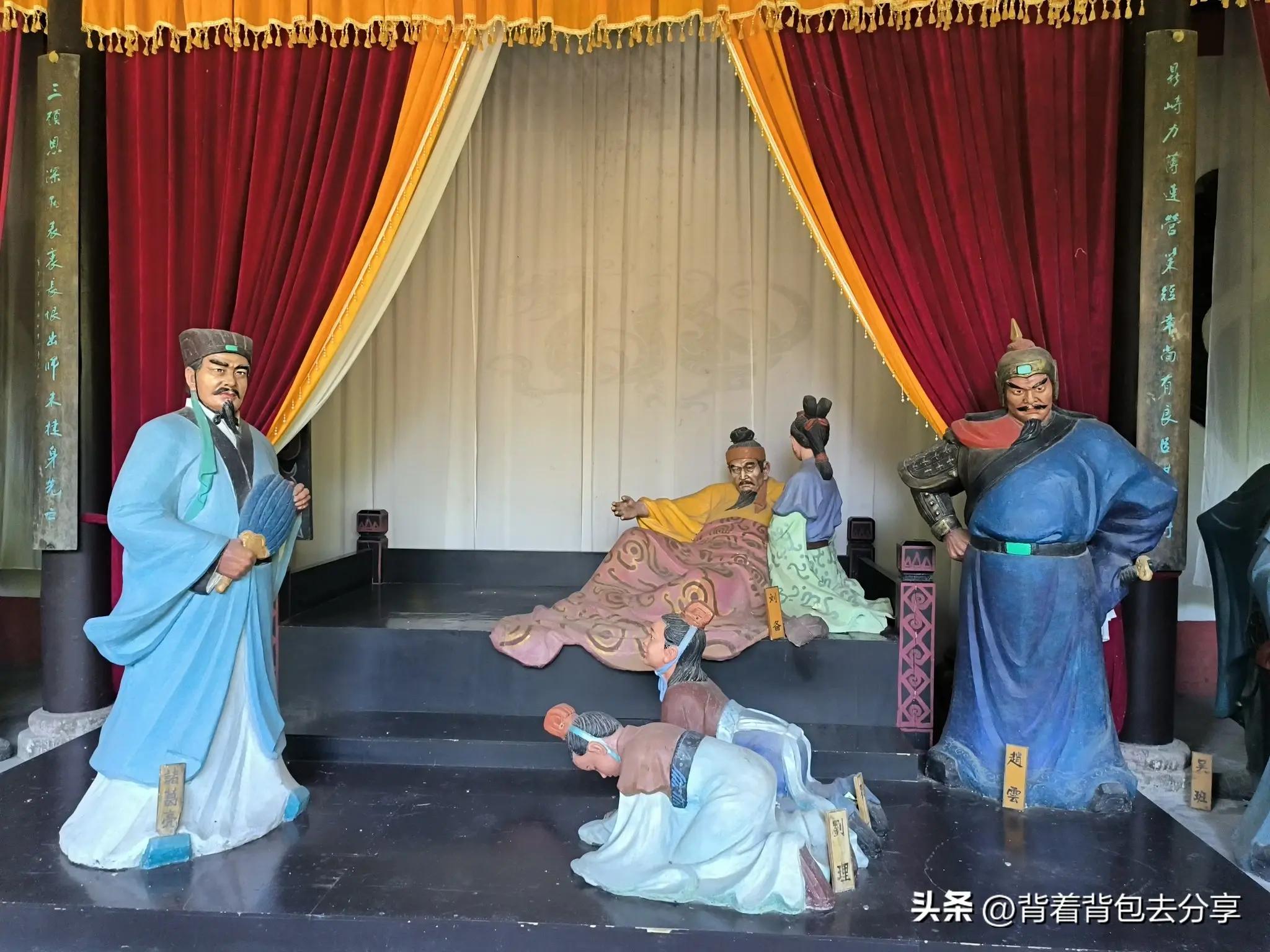 進入白帝廟,首先看到的是託孤堂,堂內有劉備託孤與蜀國人物的塑像,也是爲了紀念諸葛亮託孤寄命,臨大節而不可奪的忠君品格,塑像是由著名雕塑家趙樹同,在1984年設計,製作了劉備託孤的雕塑,並展出於堂內,隨後,我與兩個小孩來到了堂後的碑林,沿山林小路,到達夔龍的石塑