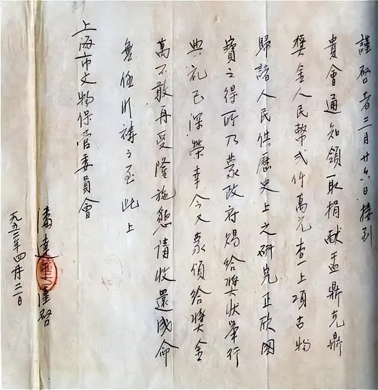 潘達予來自蘇州望族潘家,上海博物館前館長、青銅器研究專家馬承源曾對潘家表示,“你們的青銅器收藏,僅次於故宮”。爲護佑這些文物,潘家幾代人費盡心血,在解放前頂着達官貴人的敲詐勒索,美帝古董商人的重金利誘以及日軍的輪番搶奪,歷經千難萬險將文物保護了下來。1951年移居上海的潘達於將大克鼎、大盂鼎無償捐贈給上博,成爲一段佳話。
