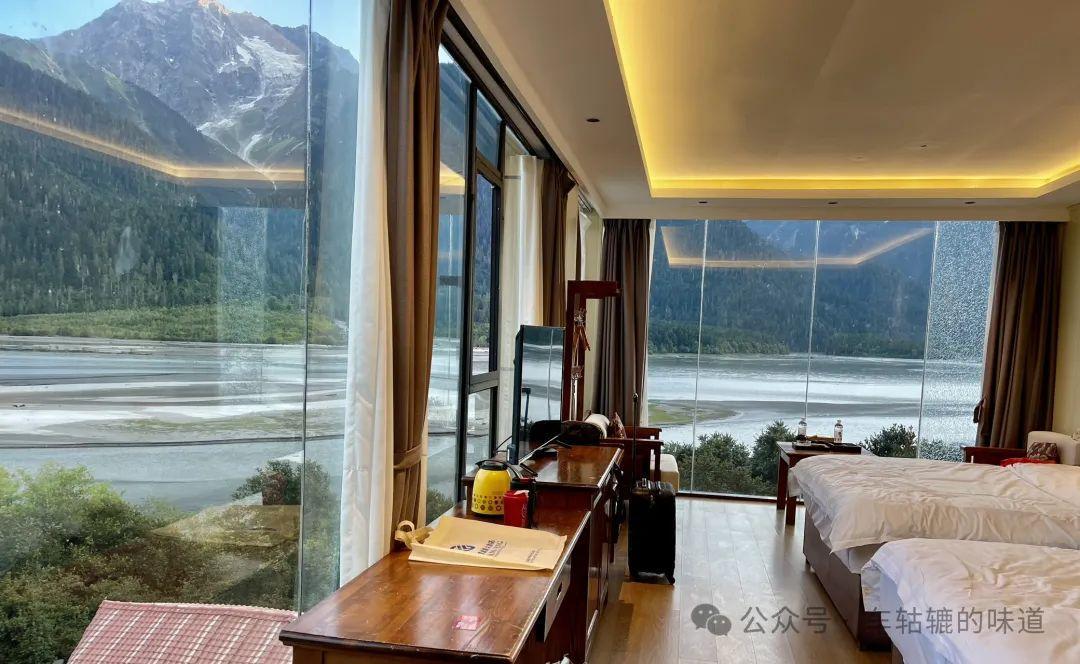 29日下午我們到達古鄉湖,入住途友酒店。酒店緊靠湖邊,全部都是落地大玻璃窗,躺在牀上就可以欣賞雪山湖泊美景,太爽了!