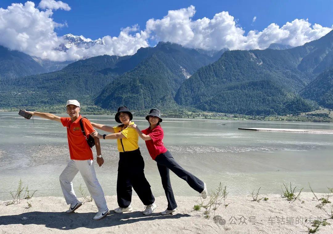 一路上,我們遇到美景就停下車來打卡,原計劃中午到魯朗小鎮喫石鍋雞的,大家玩興太濃,都不想趕路,就在風景優美的易貢湖邊停下車來喫自嗨飯,在大自然中邊喫邊賞美景。