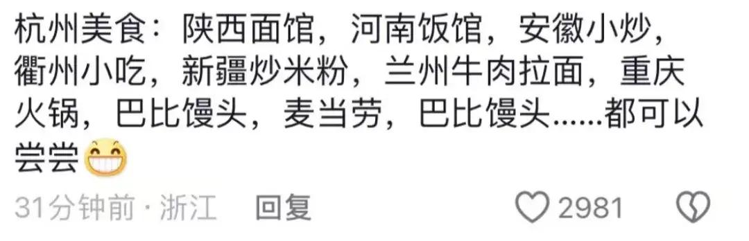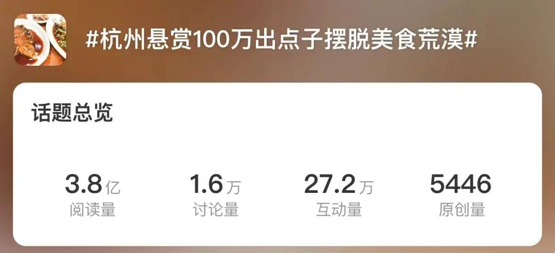 此前,還有“杭州懸賞百萬出點子擺脫美食荒漠”話題霸榜各大社交平臺——