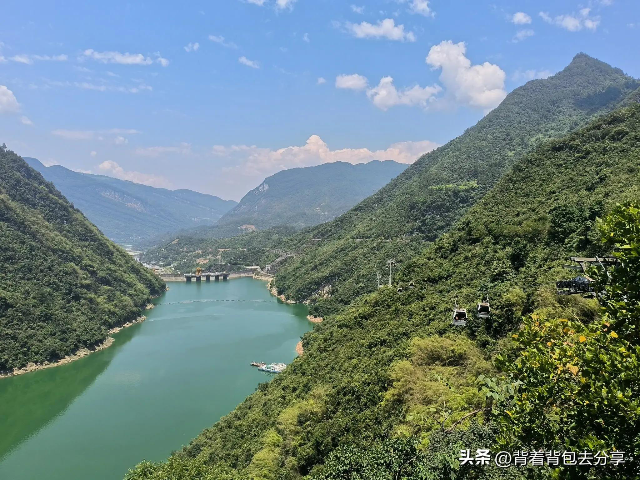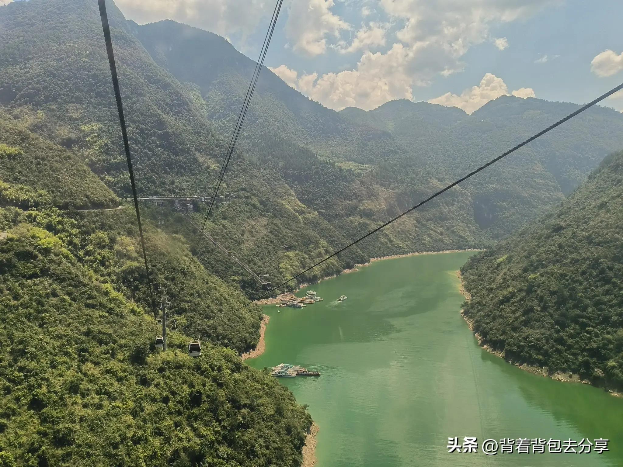 到達索道上站,整個站房只有我們一家,跟隨轎廂進入,很快離開站房,比起上行的景色,下行的視野更爲開闊,秀水碧波的芙蓉江,一個江峽型的喀斯特地貌和水上森林,顯得更加美麗,很快便來到了索道下站,進入遊客中心休息片刻,正當拿出手機查票,索性看到2點多還有一班,比之前所訂提前4個小時
