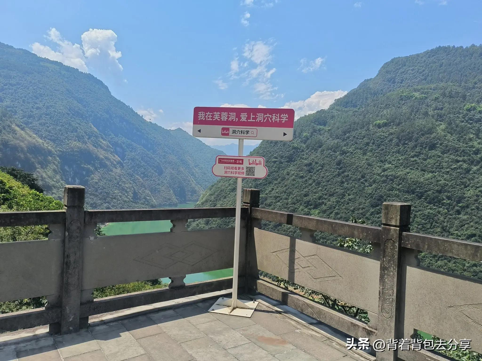 乘坐索道的話,可以從遊客中心下站到芙蓉洞上站,需要跨過一座山峯,乘坐索道的話,到達洞口,只需要10分鐘左右,不想乘坐索道的話,也可以步行去往,在遊客中心下行,走景區公路,雖然只有2公里左右,基本上都是長上坡,步行的話,需要半個小時左右