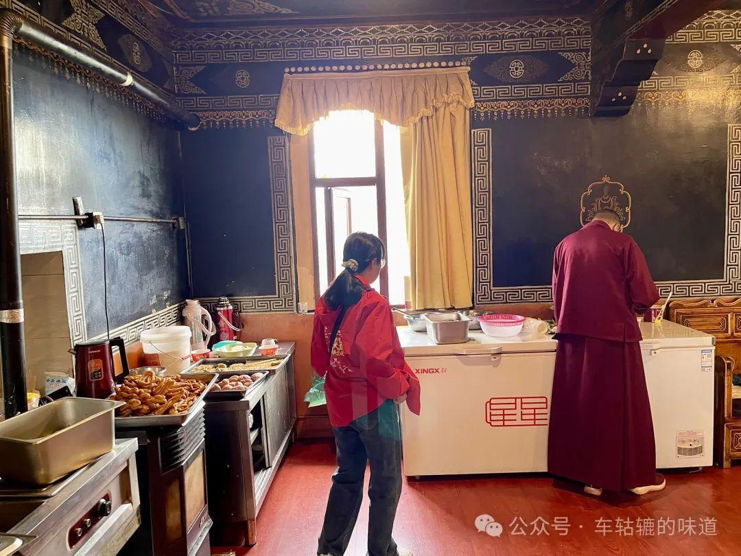 寺廟裏有食堂,盤子裏的菜有葷有素,桌子上擺放着很多供奉的各種飲料水果等食品,熱情的僧人告訴我們這些東西可以拿着喫。