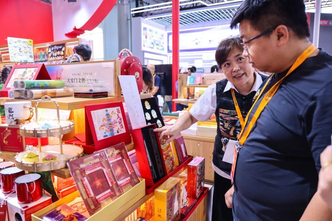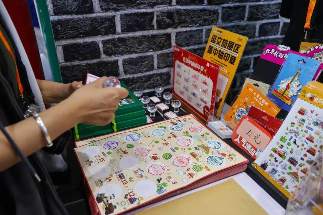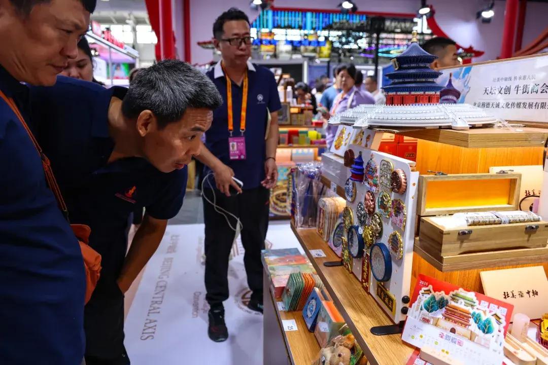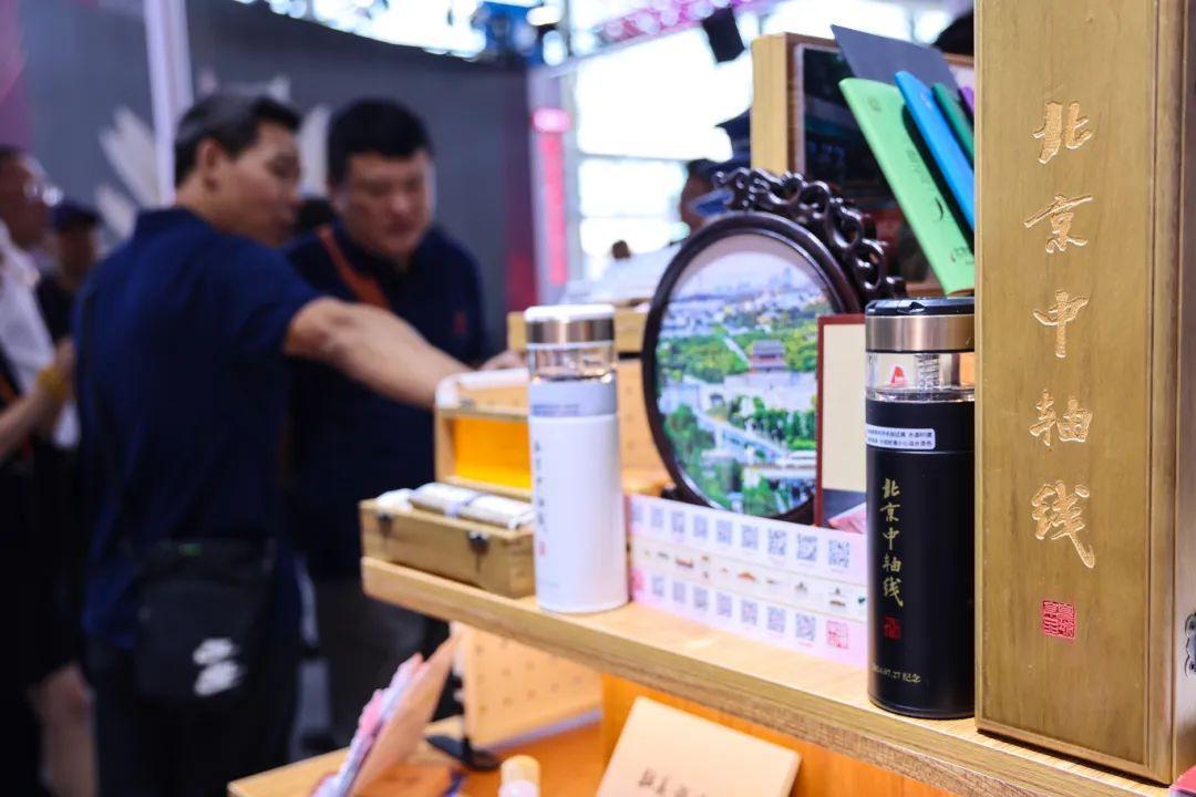 本屆服貿會文旅服務專題聚焦“中軸線”推出多項沉浸式觀展和互動體驗活動,天壇、景山公園等景點文創產品琳琅滿目,吸引了許多觀衆遊客駐足。