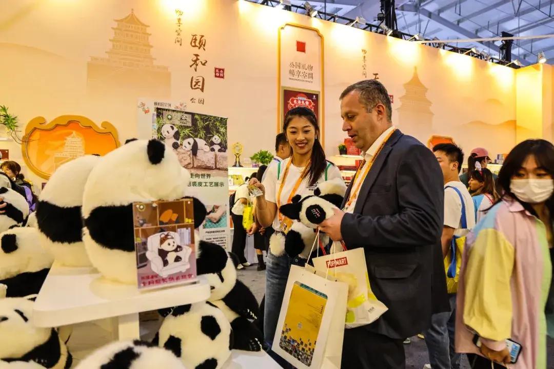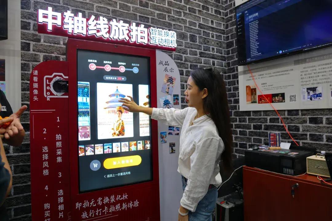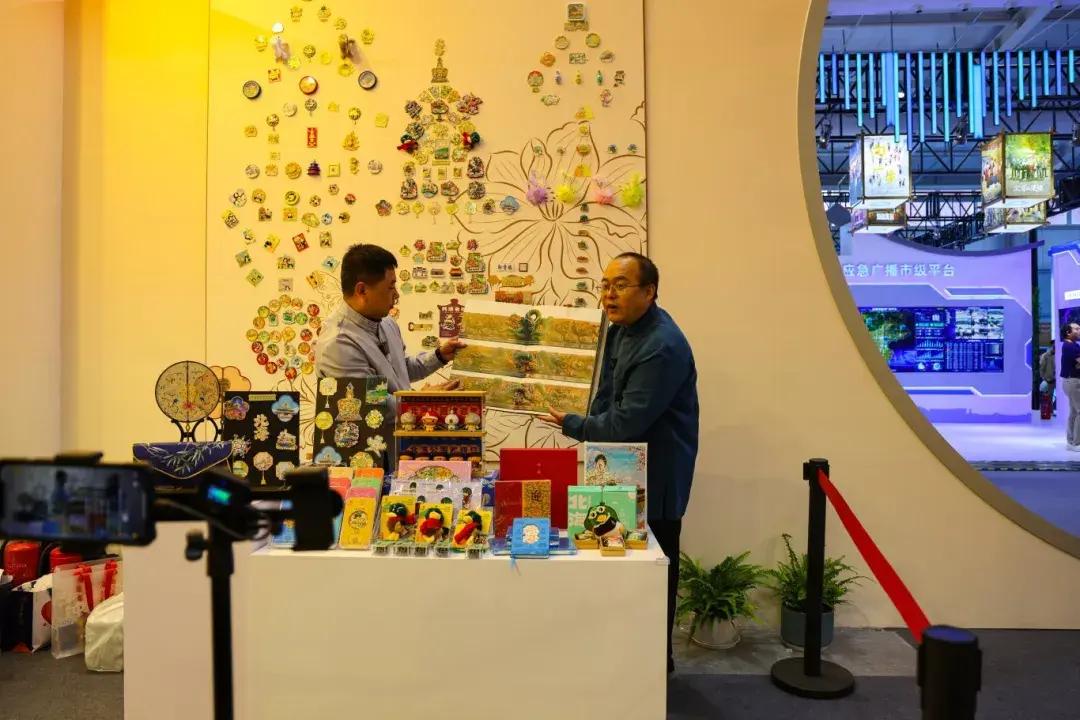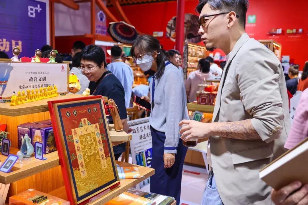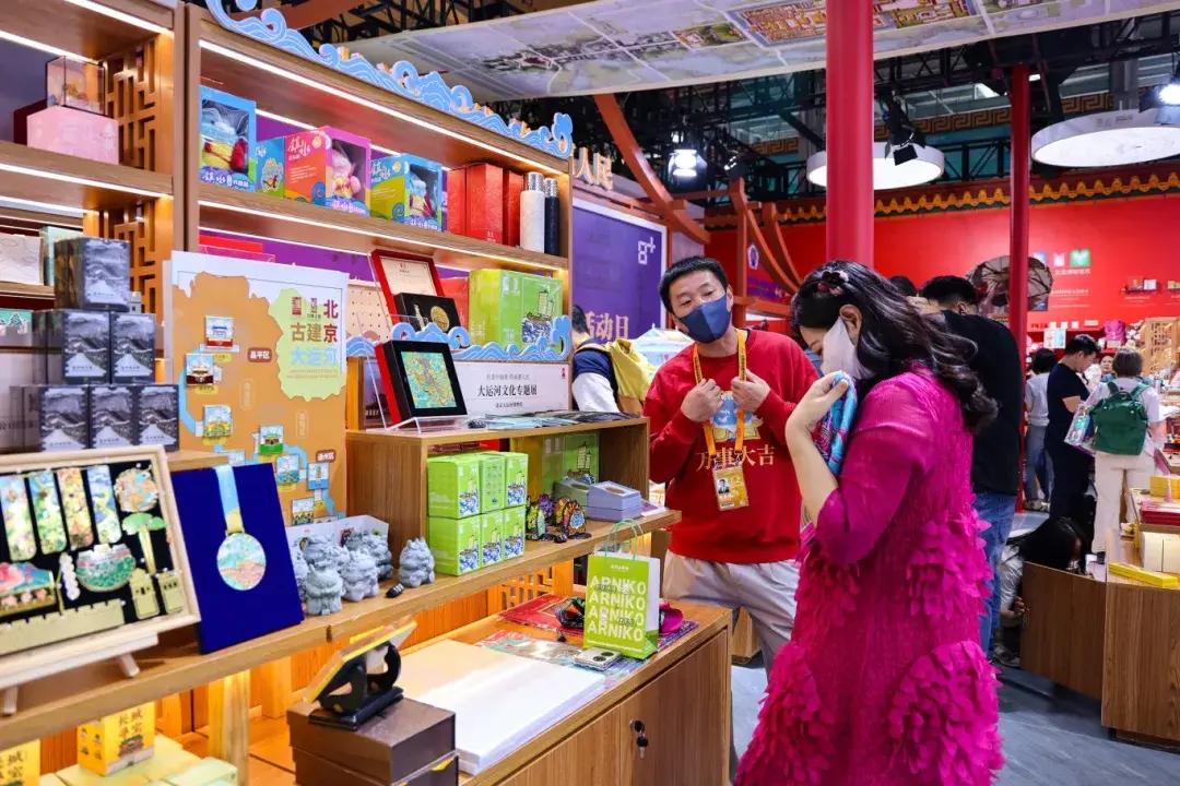 本屆服貿會文旅服務專題聚焦“中軸線”推出多項沉浸式觀展和互動體驗活動,天壇、景山公園等景點文創產品琳琅滿目,吸引了許多觀衆遊客駐足。