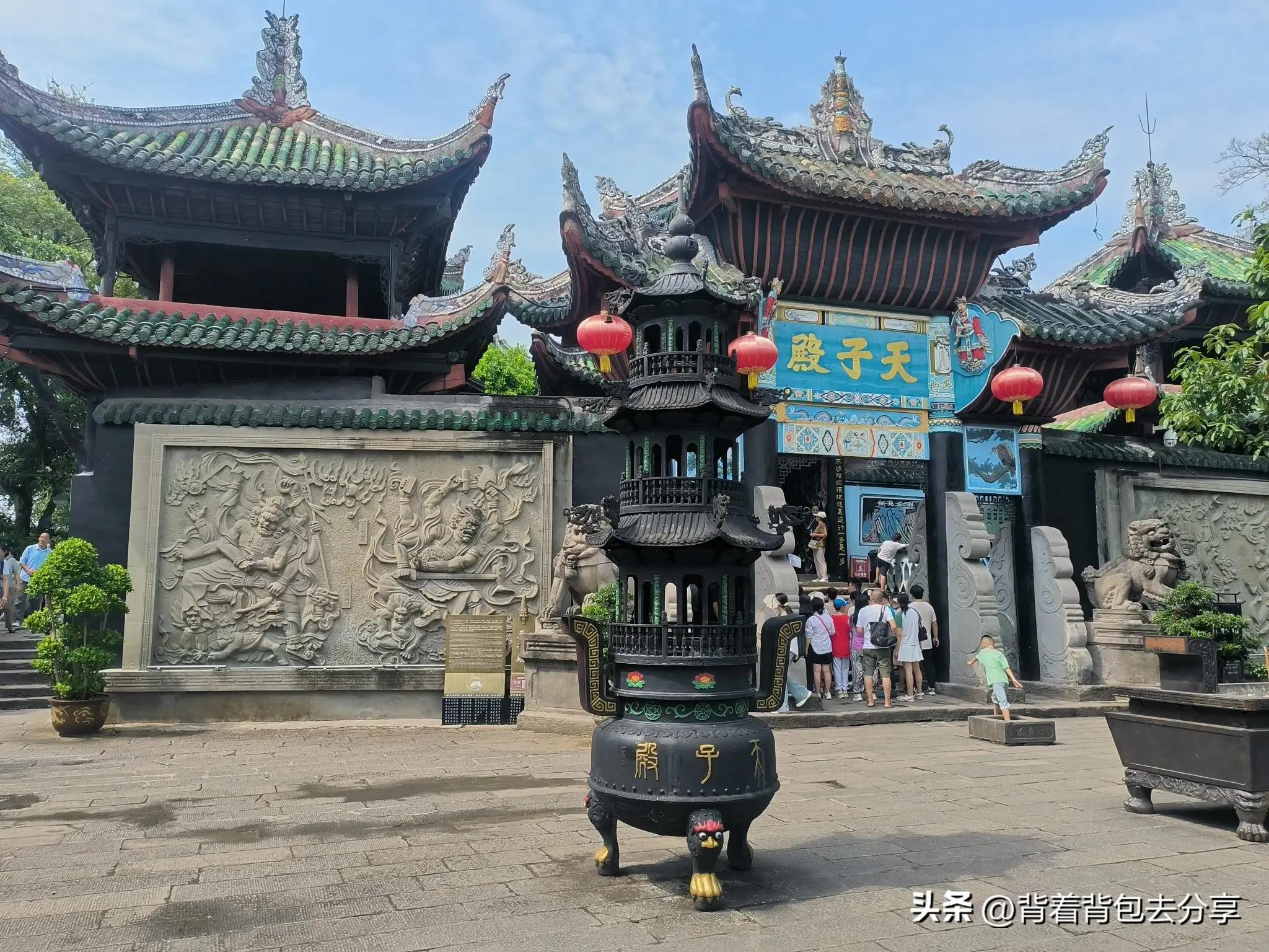 簡單的話語回答女兒,答應了她的要求,隨後,我們一家四口先來到了哼哈祠,現在看到是1985年遷移重建,祠內塑哼哈二將像,傳爲周武王伐紂時,戰死沙場的鄭倫和陳奇,後被姜子牙封爲神將,過哼哈祠是報恩殿,這裏的遊客非常多,一波接着一波,很多導遊都在此停留,耐心的爲遊客講解報恩殿的故事
