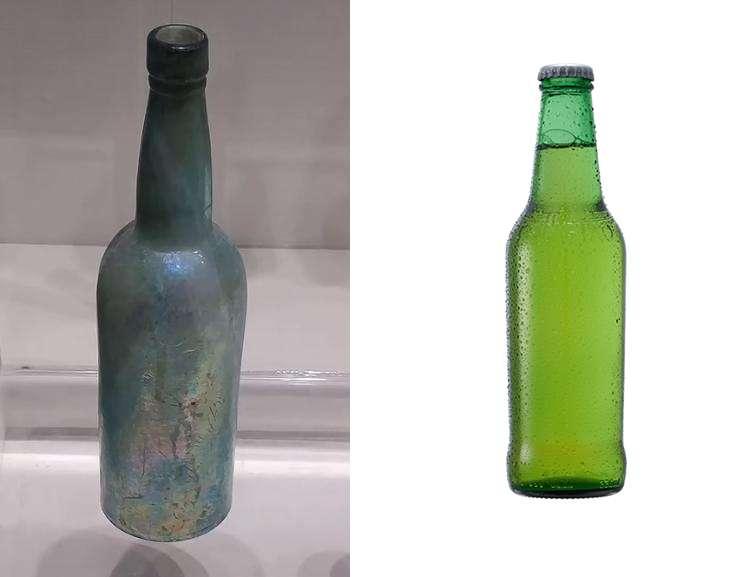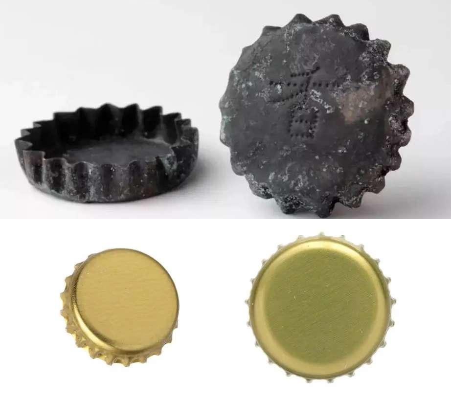 有啤酒瓶蓋,自然要來個啤酒瓶配一下。我提名西安博物館藏的元代琉璃瓶,你們看像不像?這造型,這材質,任誰看了不得問一句“確定不是青島出土的?”其實我國使用玻璃的歷史已經有兩千五百年了,到了元代玻璃製造的工藝更是相當成熟。所以像這樣的玻璃瓶出現在博物館裏並不奇怪,只是這造型實在有點太“湊巧”一點。