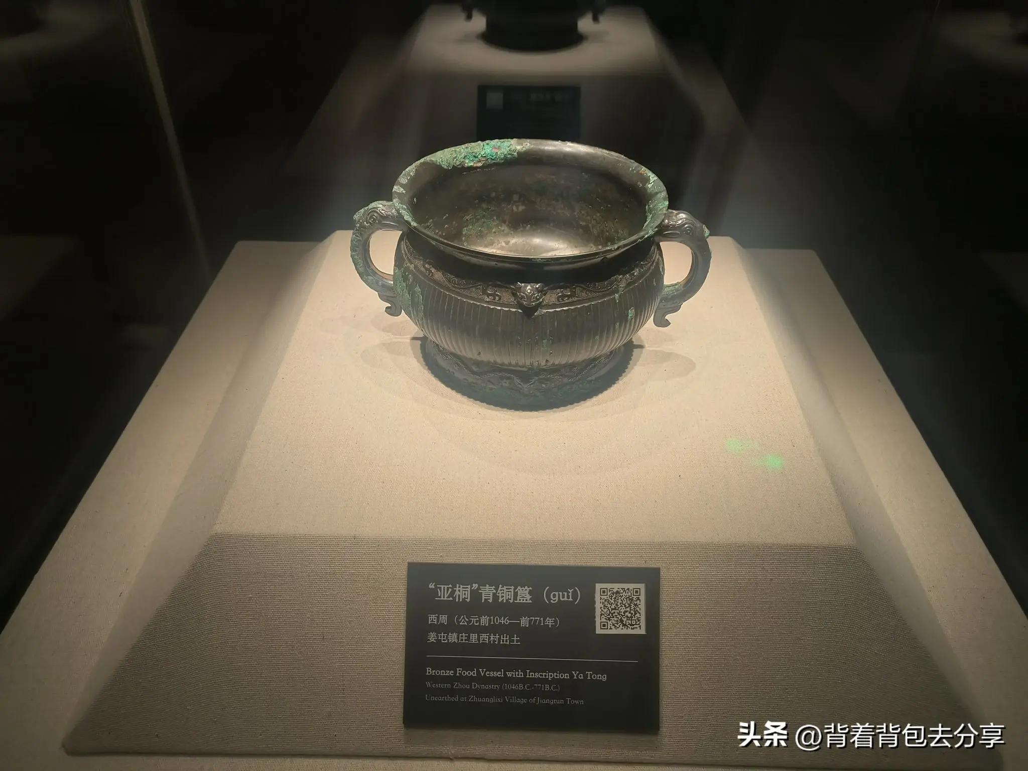 亞桐青銅簋,出土於姜屯鎮莊裏西村,頸及圈足飾有雙體龍紋,雲雷紋爲地,腹部飾直條紋,器內底部鑄七字銘文亞桐作大尊,頸與腹之間有對稱龍形雙耳,龍首銜頸,龍身飾捲雲紋,小勾珥