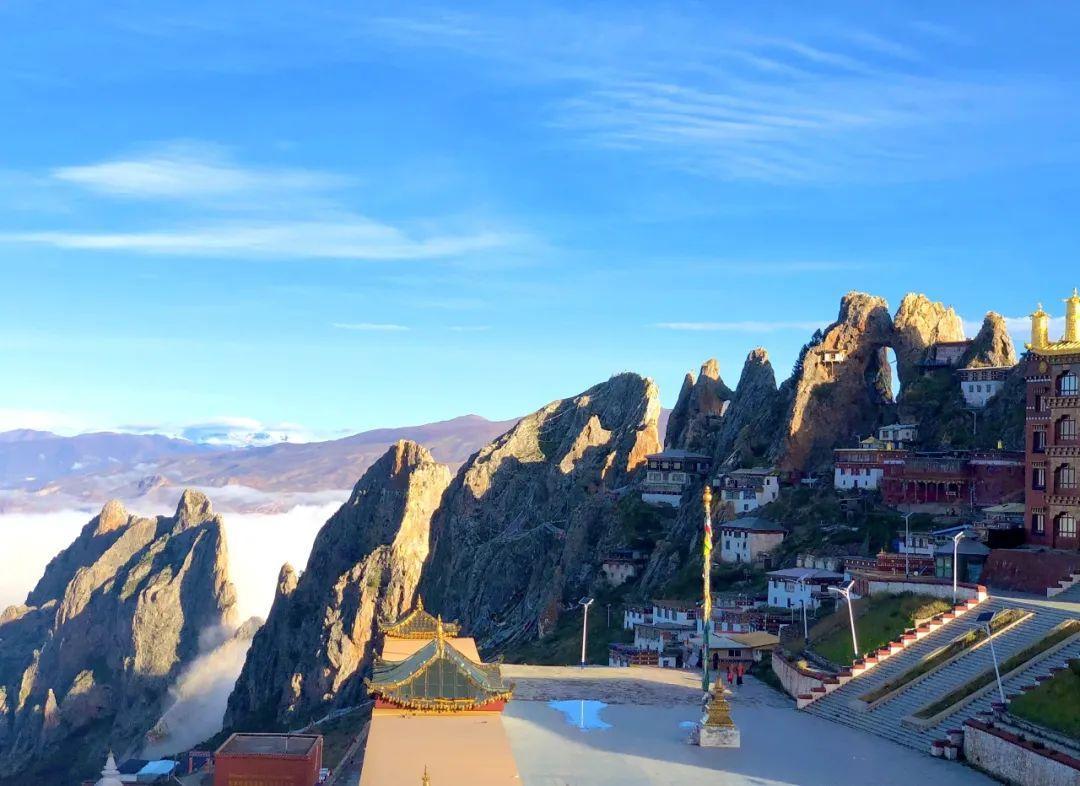 格薩爾王城:王城以格薩爾文化爲主題,建成一條主道、一座王宮,依照格薩爾的傳奇一生,勾勒出最完整的一條生平序線,繪就了一幅格薩爾生平文化的立體畫卷,是格薩爾文化元素最集中、藏式建築景觀最多樣、旅遊要素最齊全的文化旅遊新地標。