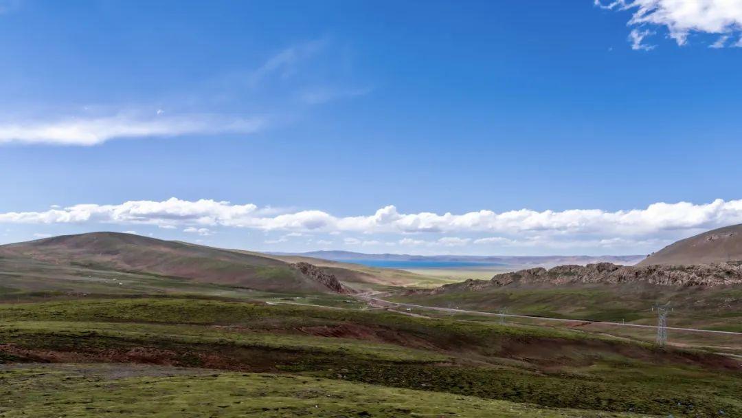 西藏第一大湖——色林措(海拔4500米)。色林措在藏語意爲“威光映復的魔鬼湖”,湛藍的湖水,牛羊成羣,一片高原牧場的景象。沿途有很多大大小小的無名湖泊(陛駱措、果根措、班戈措等),這些湖也曾經與色林措是一體。